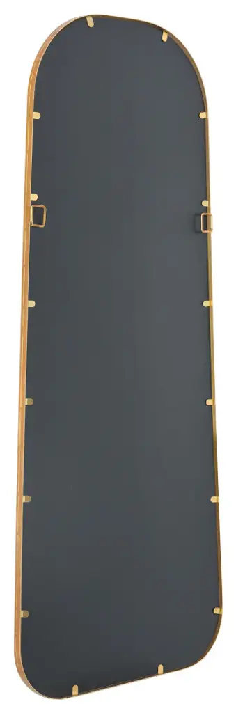 A fashion-forward look takes on simple style for perfect balance in a casual bedroom or dressing space. This floor mirror delivers a well-rounded design that dresses up or tones down a semi-formal or casual living area. A full-length design doubles the convenience of this elegant floor mirror, a suitable option for retaining the simplicity you crave yet spiced up with a sleek profile. A rounded edge silhouette and antique gold metal frame embellish stylish and sophisticated personality. Choose this mirror for its artistry and functionality. Features: Includes: One (1) floor mirror Sleek profile and rounded edge silhouette for stylish sophisticationAntique gold metal frame for fashion-forward lookFull-length design for convenience and balancePerfect for semi-formal or casual living areaArtistry and functionality for simple styleColor: GoldDimensions: Floor Mirror: Width: 23.50, Depth: 1.00, Height: 59.00, Weight: 23.76