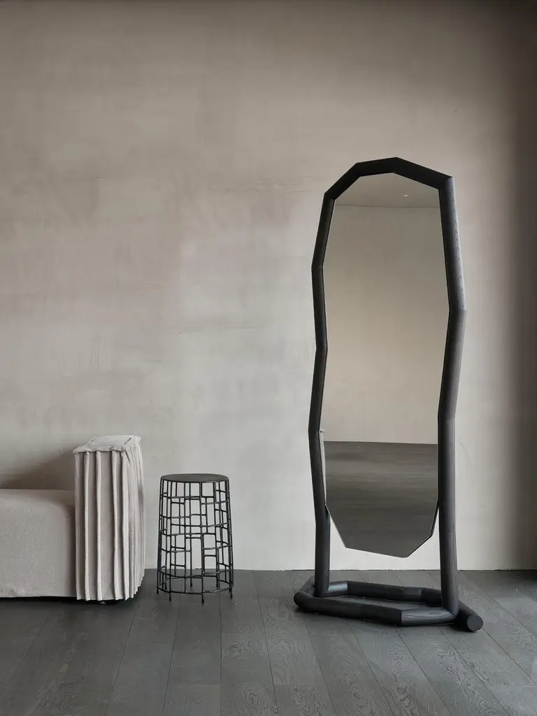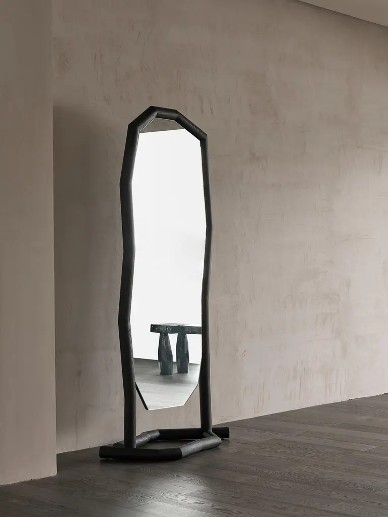 Snap Floor Mirror by DAaZDimensions: D 53.9 x W 76 x H 185 cm.Materials: Ash wood, mirror.DAaZ Furniture honors the spirit of adventure. We embrace the escape of the ordinary and revel in the magic that’s found in the unexpected. Our artistic ability shines through in our choice of contrasting designs that challenge conventions, tailor trends, and bring out the creative flair in our customers too. Faced with a treasure trove of choices, you are inspired to walk individual paths leading to the unknown, unveiling new sights, enveloping you in the scent of nostalgia.We bring to your home more than just beautiful design, but unique fragments of life stories. After all, what is your home but a blank canvas on which to celebrate your own journey with the people you love.