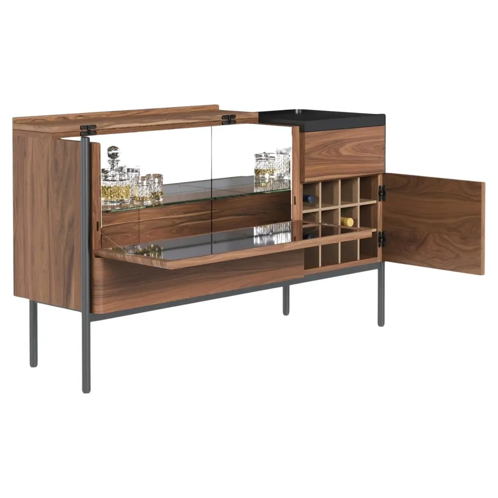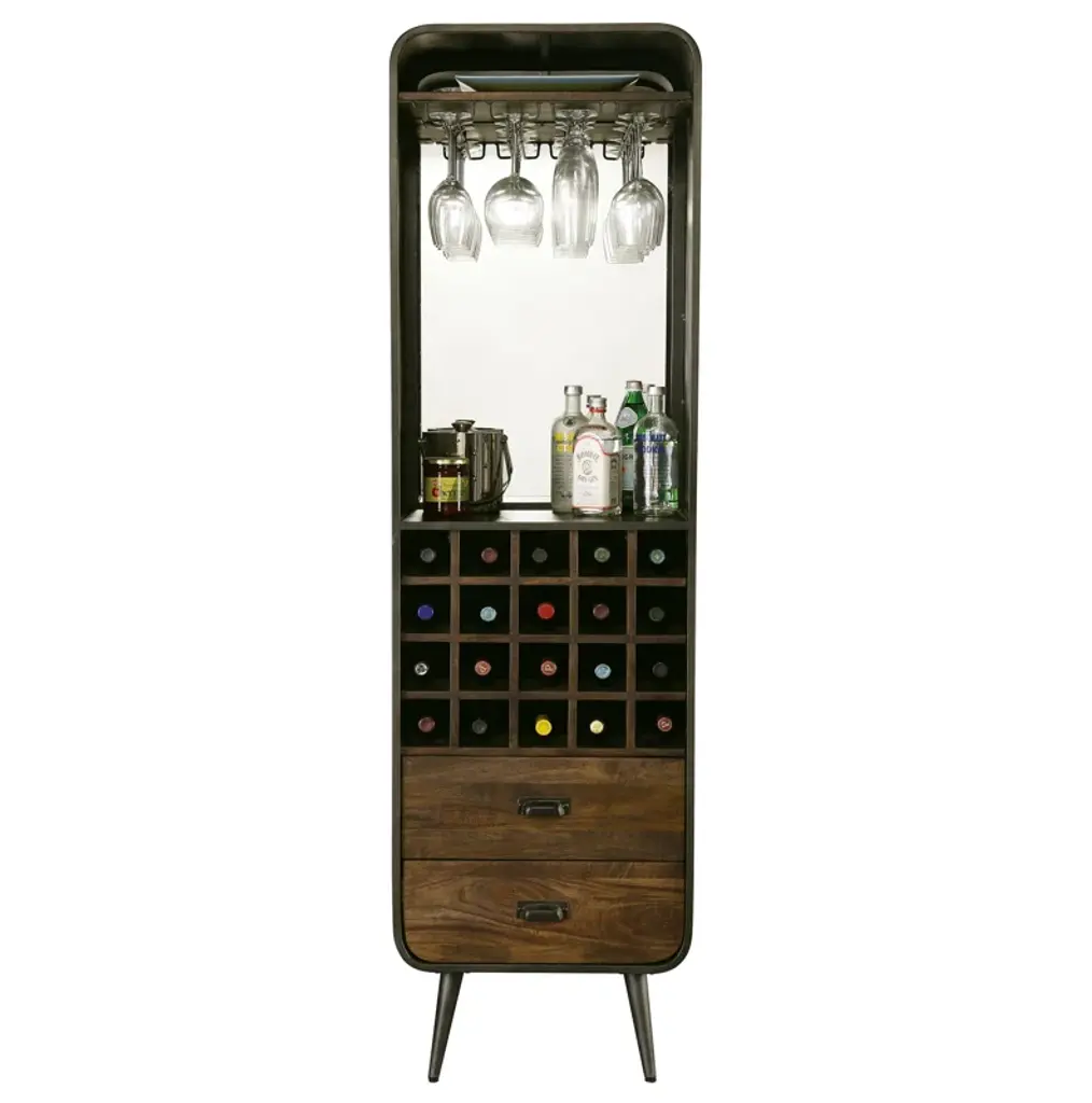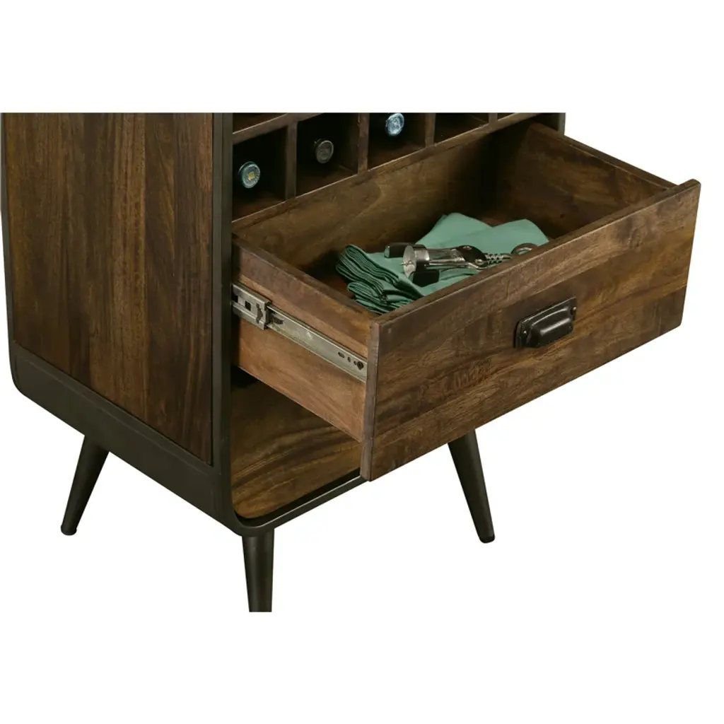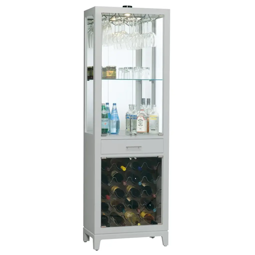 Storing your wine, liquor, and barware is about more than practicality. Enjoy the stunning elegance of this Howard Miller wine and bar cabinet. This metal bar cabinet is finished in aged iron and includes solid wood accents finished in rustic hardwood. The carefully crafted wine cabinet offers an aged appearance, adding a rustic but beautiful touch to any space. This liquor cabinet features a carefully detailed design. The wine cabinet features distinctive legs, a mirrored upper back, an upper shelf for storage, and a lower work surface. The end result is a piece that is both useful and beautiful. Never worry about wine and barware storage again. A metal stemware rack holds up to 12 large wine glasses and a wooden wine bottle rack in the lower cabinet holds up to 20 bottles. Two wooden drawers with smooth running metal slides and metal cup pull complete the storage finished in aged iron. Adjust this piece to remain level in any room. Adjustable levelers under each corner provide stability on uneven and carpeted floors. Howard Miller: Founded in 1926 and still family-owned in its third generation, Howard Miller is the world’s leading clock company and a respected brand name in fine specialty furnishings such as curio cabinets, wine & bar furnishings, custom storage cabinets, and SmartMoves® adjustable height desks.