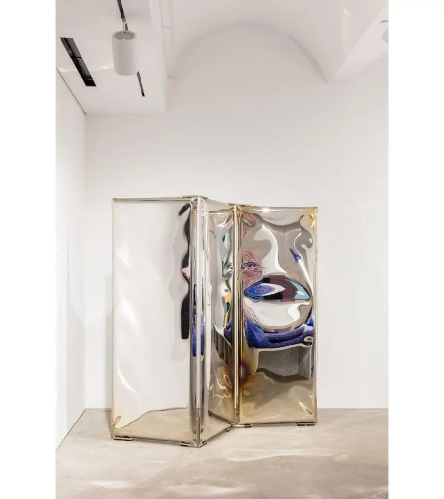 Stainless steel sonar sculptural floor Mirror by ZietaDimensions: D 10 x W 215 x H 182 cm Material: Stainless steel. Finish: Polished. Available in finishes: Stainless Steel, Deep Space Blue, Emerald, Saphire, Saphire/Emerald, Dark Matter, and Red Rubin. Lose yourself in the SONAR’s reflection! The SONAR mirror is a sculptural object that strongly defines the space and generates all sorts of visual impressions. includes RONDO in emerald, deep space blue, and sapphire-green shades.SONAR provides an original stylish solution for open plan interiors allowing to create a room full of reflections. It is not only a mirror or a partition wall – it is a piece of art that bends, expands, and splits the space – accordingly to your needs.About Zieta: Zietas main goal is to deliver uniqueness and customization in design and construction while keeping the production, transport, and warehousing innovatively efficient.This is how they imagine the future world: Light, durable structures of customized applications produced on demand out of one-of-a-kind parts, yet efficiently.They use a computer-controlled production process. Customized pattern, customized form, customized function, one-of-a-kind product, and outstanding precision are what they deliver.You will find all of this philosophy reflected in the products. The research, they discover new possibilities, they play with forms and they deliver a beautiful, innovative, surprising outcome to people who love the design and who care about design development.They believe their work is a valuable contribution to the world of design not only by the unique beauty of the forms but most of all by opening ultra-innovative opportunities of forming and new paths for the world of the future. __