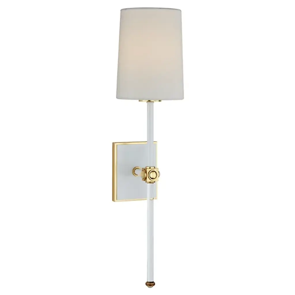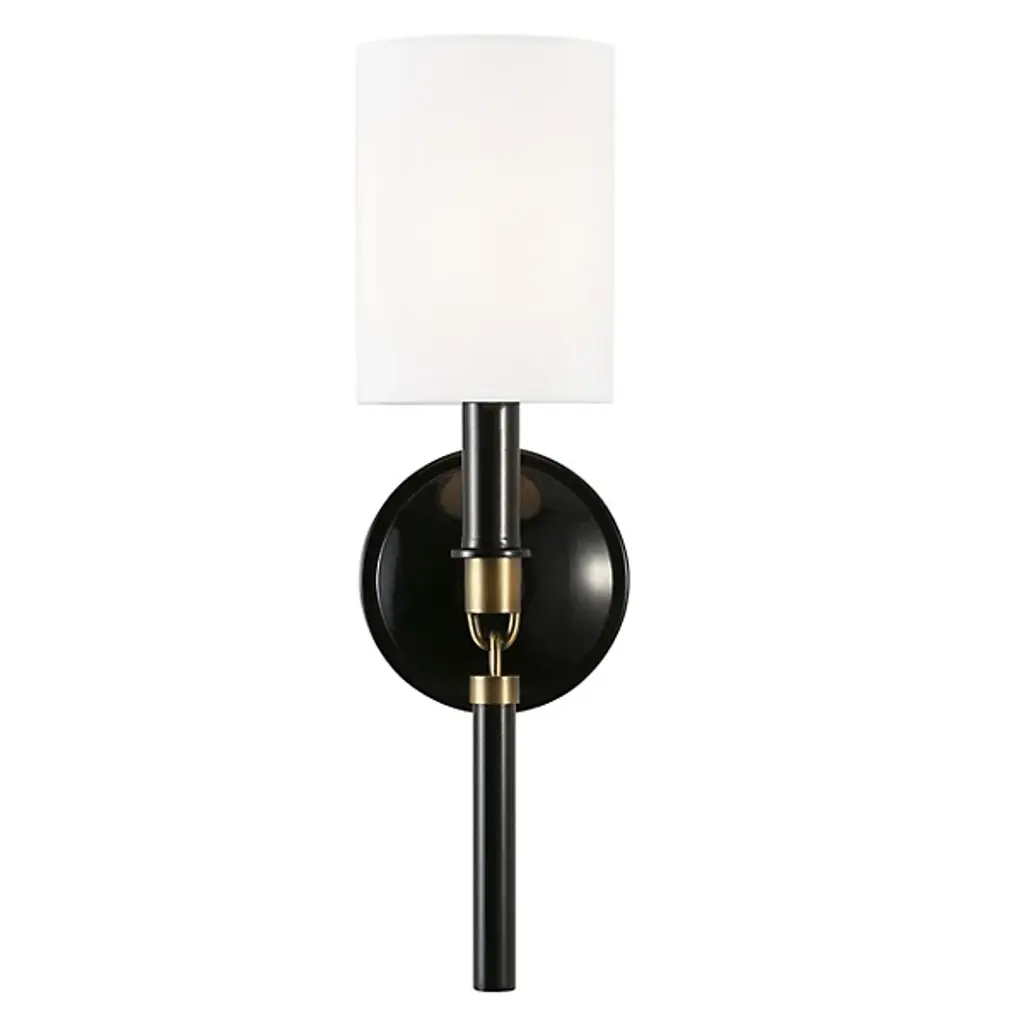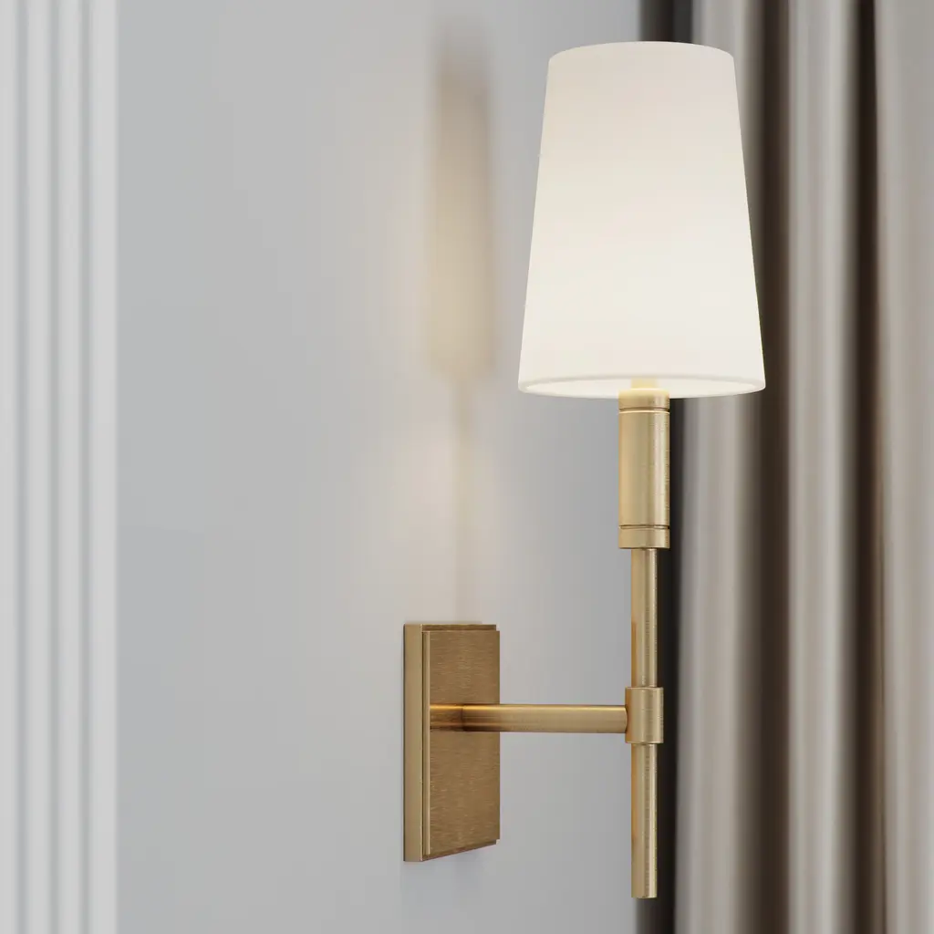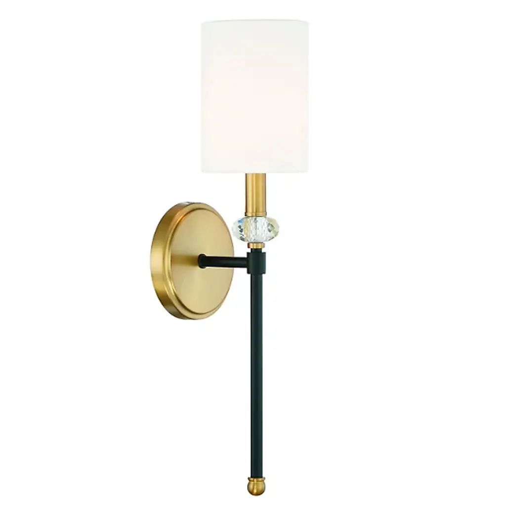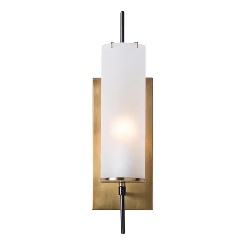 A design derived from our very popular Stefan floor lamp (79661), this one-light wall sconce combines vintage brass with frosted glass and bronze in a sophisticated and modern way. Consider pairs on either side of a mirror in the hallway. Damp-rated, although limited covered outdoor conditions may affect the finish.
