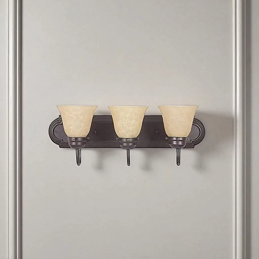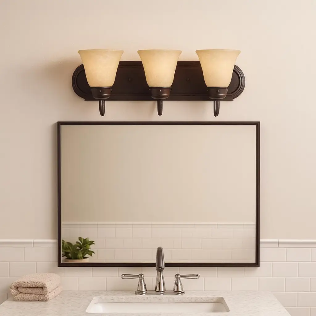 Sunset Lighting Three Light Bath Vanity, Oil Bronze A traditional 3-light bathroom vanity that pairs an oil bronze finish with classic styling for warm, inviting illumination. Ideal over a mirror, this fixture uses medium-base bulbs and complements a wide range of interiors. Key Features: • Bathroom vanity light fixture • Oil Bronze finish • Requires 3 × 100W medium-base incandescent bulbs (not included) • Traditional design suits most homes Specifications: • Brand: Sunset Lighting • Material: Glass, Metal • Style: Transitional • Light Fixture Form: Vanity • Room Type: Bathroom • Power Source: Corded Electric • Light Source Type: Incandescent • Finish Type: Oiled Bronze • Number of Light Sources: 3 • Voltage: 120 Volts • Warranty Type: Manufacturer • Certification: UL Listed • Number of Items: 1 • Wattage: 100 (per socket) • Manufacturer: Sunset Lighting • Part Number: F3563-44 • Item Weight: 6.34 pounds • Product Dimensions: 24" × 24" × 7" • Item Model Number: F3563-44 • Finish: Oiled Bronze • Item Package Quantity: 1 • Mounting Type: Floor Mount • Plug Format: A – US style