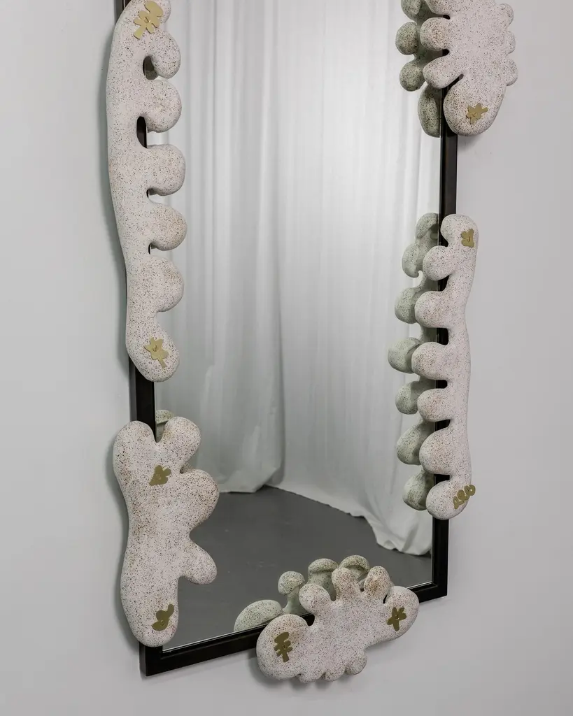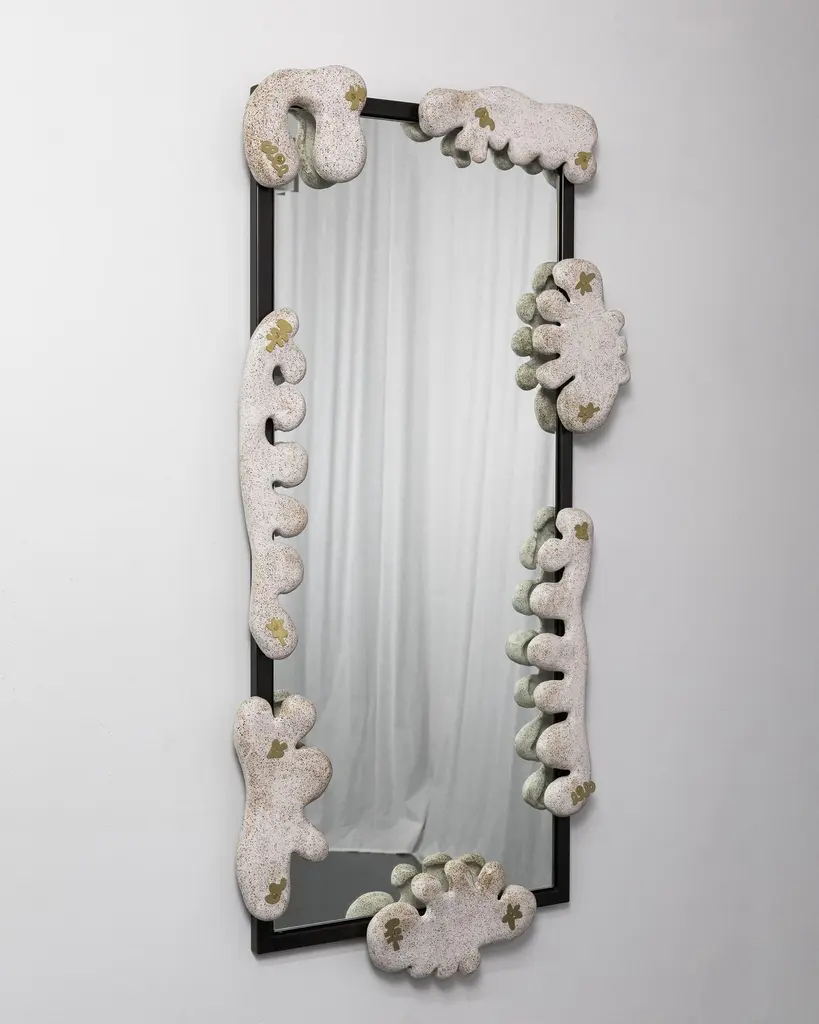 Tanguay Floor Length Wall Mirror By Calyer Ceramics & Luft Tanaka Studio2025Glazed ceramic, glass mirror, steel, & brass.24" W x 54" H x 3" D61cm W x 137cm H x 8cm DThis piece can be customized in different finishes and dimensions. Please contact us for any inquiries.