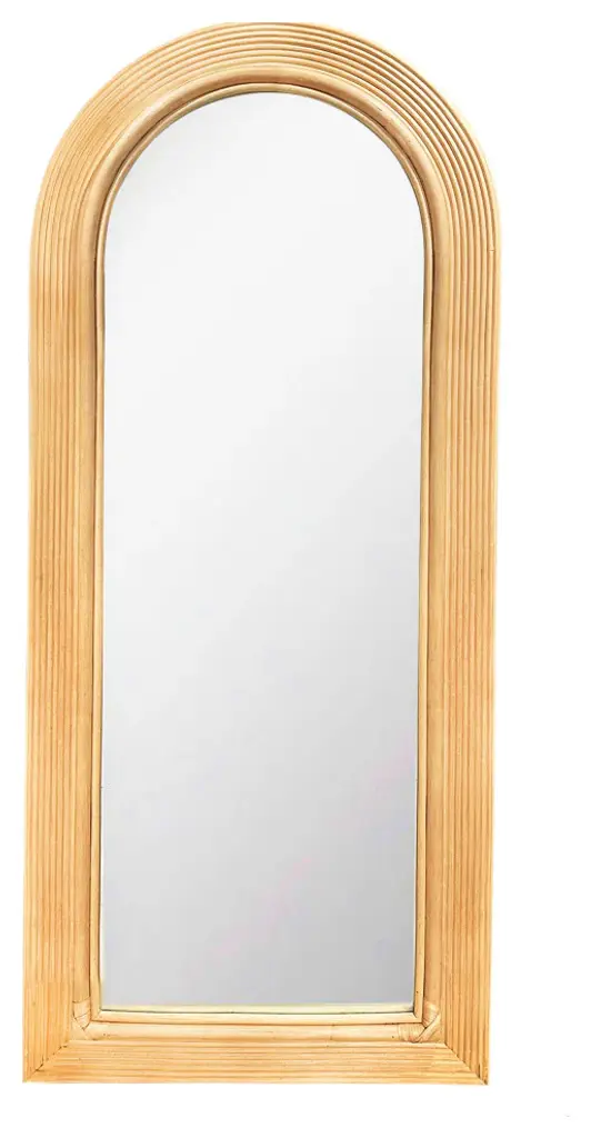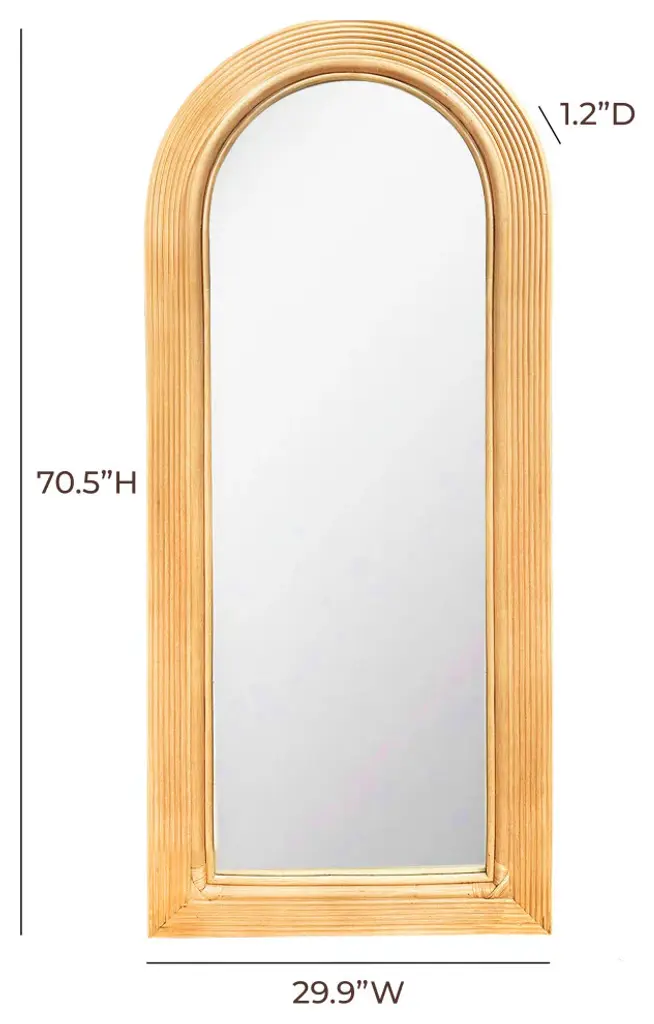 Discover the Tanya Rattan 70" Floor Mirror, a stunning fusion of natural elegance and Bohemian flair, available in both natural and black finishes. Crafted with natural raw rattan and cane, this mirror exudes an earthy vibe, perfect for bringing a touch of the outdoors into your interior space. Its distinctive tubular framing and graceful arch design elevate the piece, making it not just a mirror but an artful statement in any room.