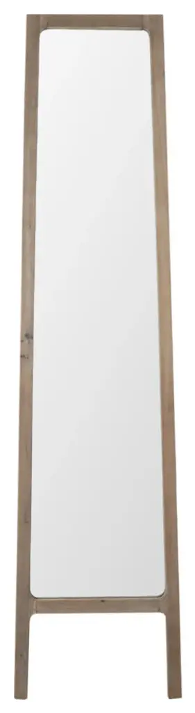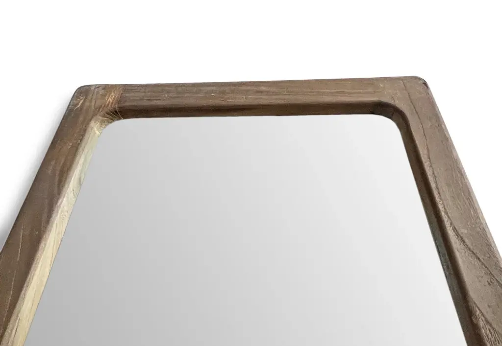 Salvaged pine wood full length standing mirror with minimalist tapered frame design. Each slightly unique in exact tones, grain, and natural imperfections inherent to the reclaimed wood material. This mirror weighs approx. 35 lbs.