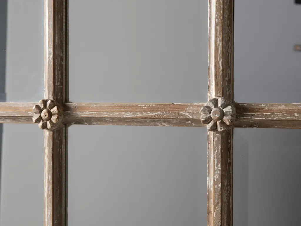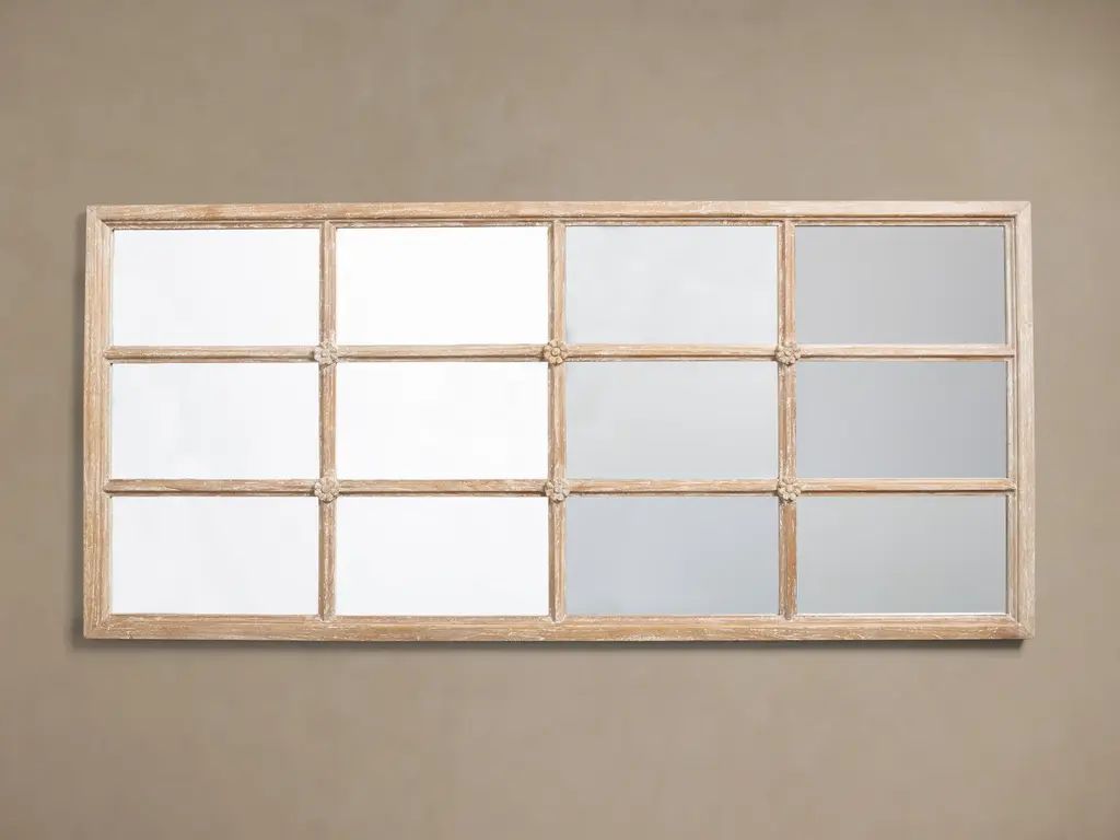 This handcrafted teak mirror adds subtle depth and a rustic, bohemian style to any room. Brighten any setting and increase its sense of space with this mirror’s minimalistic, multi-panel window-like design.