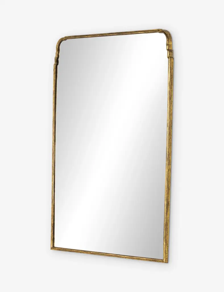 Looking for that touch of vintage opulence? The Teresa mirror features a classic, shaped silhouette with a thin, gold-leaf frame offering up timeless elegance. This floor mirror is a tone-setting addition to a transitional bedroom or lounge.