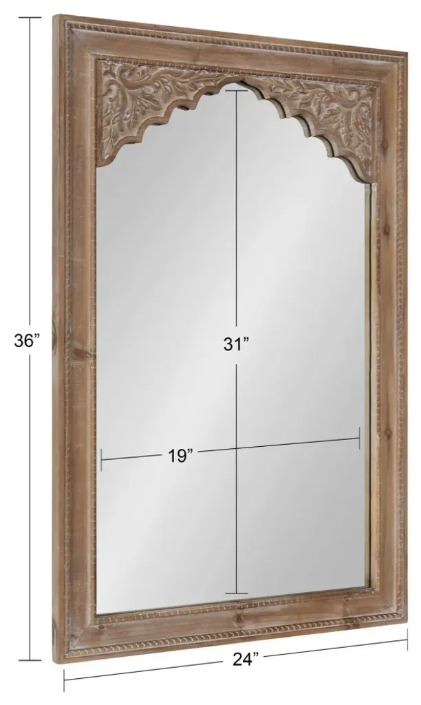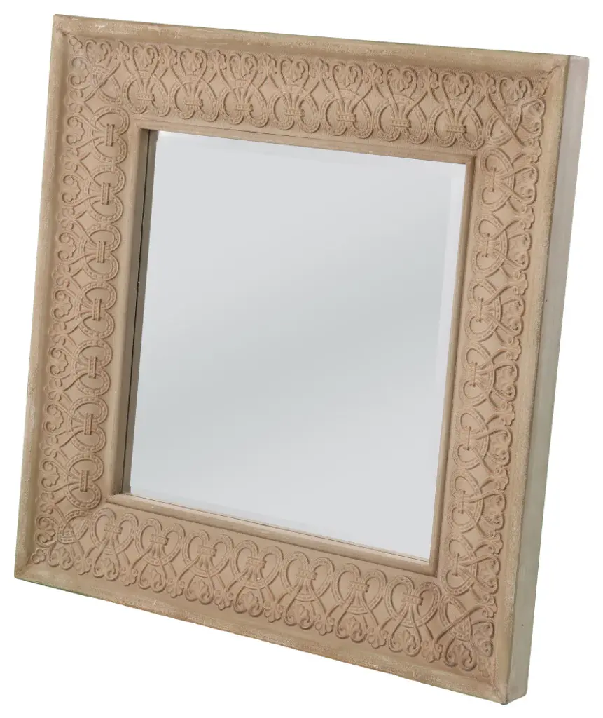 Bring classic texture and functional design to your space with this carved wall mirror. A beveled center mirror adds depth to your small space floorplan, while the decorative frame creates a tradtional feel throughout your home. Ideal for nearly every room, this hanging mirror works as a stylish statement piece in your entryway or dining room or as functional décor in your powder room or living area. Elevate your design with intricate detailwhen you add this carved mirror to your space. Weathered gray finish. Square mirror with decorative frame. Classic beveled mirror and carved frame. Functional design works in any room. Dust with a soft, dry cloth. Clean mirror with glass cleaner.