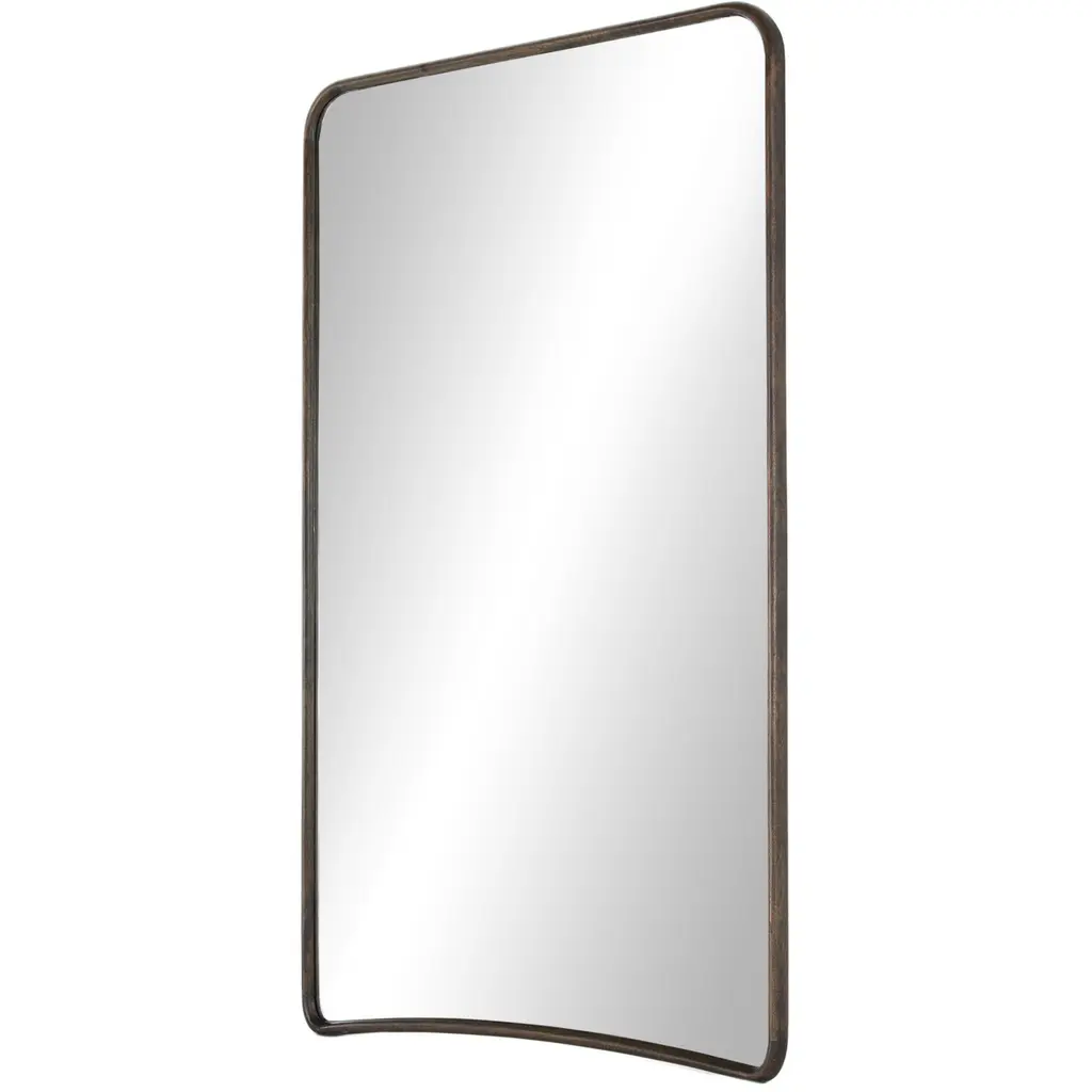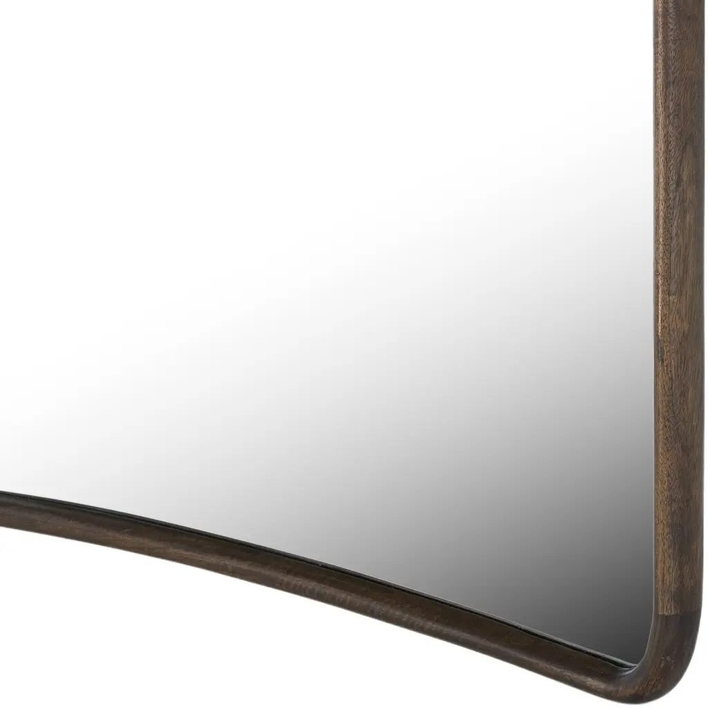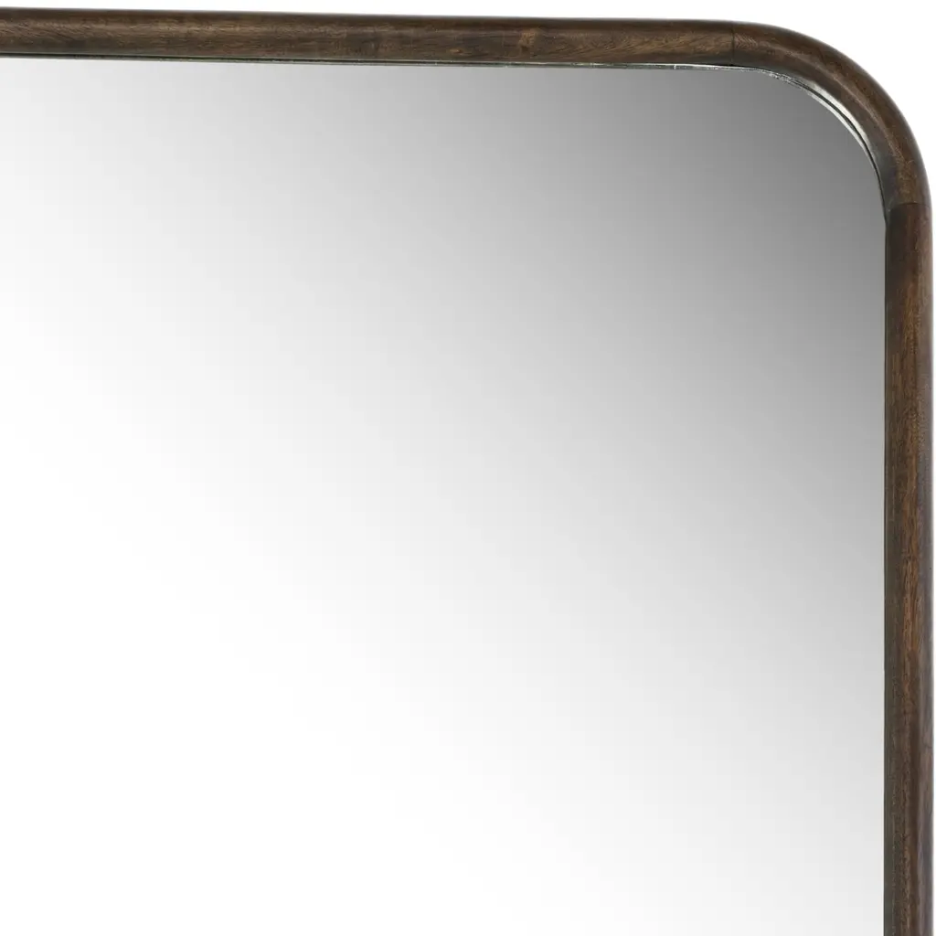 The Valtrix Floor Mirror is a stunning embodiment of modern Deco design. This floor-length mirror captivates with its simple yet beautiful aesthetic, crafted from aged brown mango wood. Its design features elegant bullnose edges and a graceful lower arch, making it a sophisticated addition to any space.