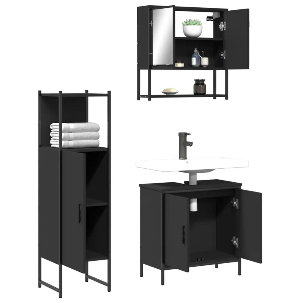 Vidaxl Bathroom Furniture Set Black Engineered Wood Medium