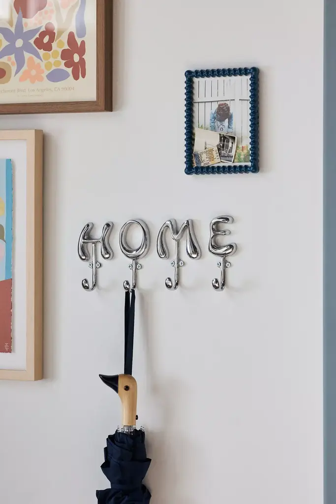 This Wall Mounted Coat Rack is a stylish and practical piece, perfect for decluttering your home while looking great. Its sleek lines and minimalist vibe make it spot on for any hallway or entryway, blending in effortlessly with different styles. Space-Saving Design: The wall-mounted feature of this coat rack frees up floor space, making your entryway feel more open and organized. Keeping coats and bags off the floor does wonders in smaller spots.Elegant Finish: The mix of matte white MDF and copper bits brings a sophisticated vibe, adding a touch of class to your home. This clash of finishes boosts the overall look of your hallway.Functional Hooks: With four hooks to use, this rack can easily hold coats, hats, scarves, and bags, ensuring everything is within reach. It's fab for bustling households and great for those who race out the door.Stylish Décor: The distinct cutout lettering and decorative inlays don't just serve a purpose—they elevate the style factors in your home. Every design bit mirrors a modern, stylish lifestyle.Easy Installation: It comes with all the bits you need for mounting, so putting it up is a breeze. You can get it sorted in no time, making it perfect for those who are always on the go.