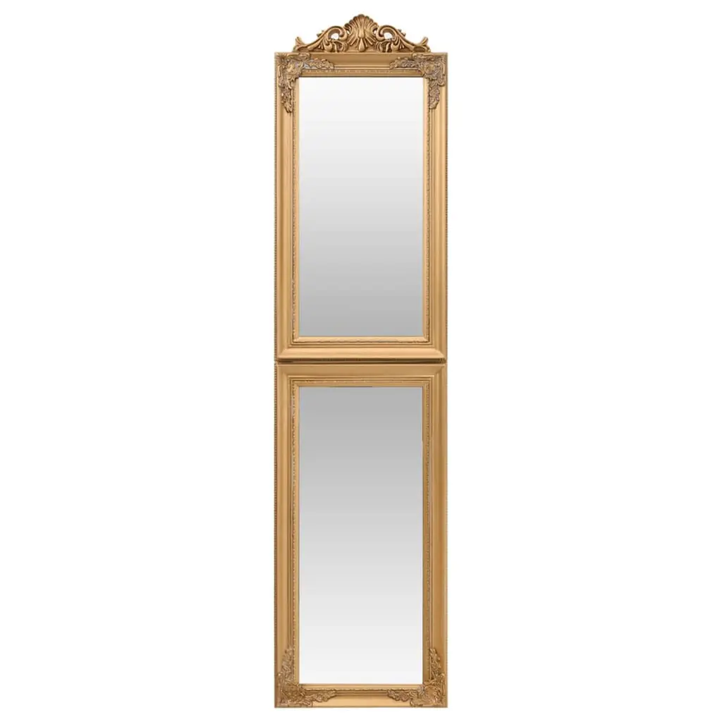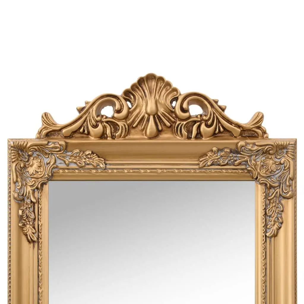 This stunning free-standing mirror mixes function and elegance with its Baroque design, making it a fab centerpiece for any bedroom or hallway. The shiny gold finish adds a touch of luxury and style, elevating the look of your space while being practical for daily use. Beautifully Gilded Finish: The mirror features a stunning gilded finish that adds a luxurious touch to any room.Versatile Usage: This mirror is perfect not just for personal grooming, but also serves as an elegant piece of decor.Space-Saving Design: The foldable feature allows for compact storage, making it functional for any living space.Full-Length View: With dimensions of 15.7x63.0 in, it provides a complete view, perfect for dressing.High-Quality Construction: Crafted from glass and solid eucalyptus wood, ensuring durability and style.