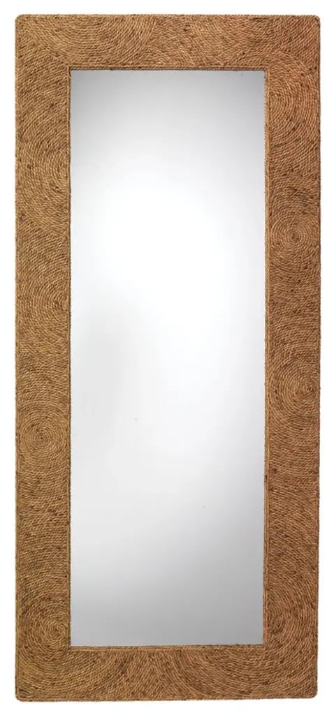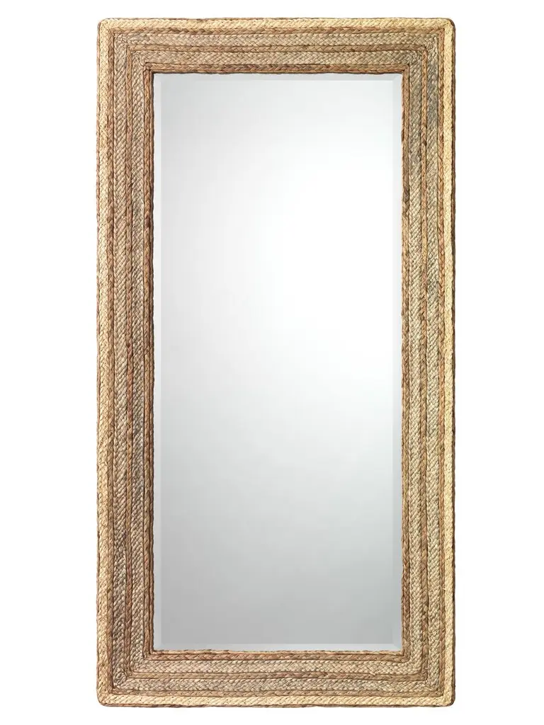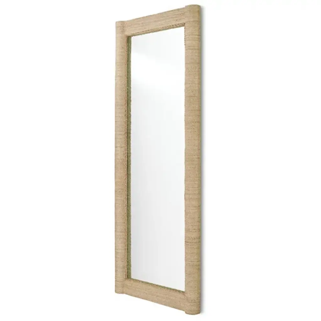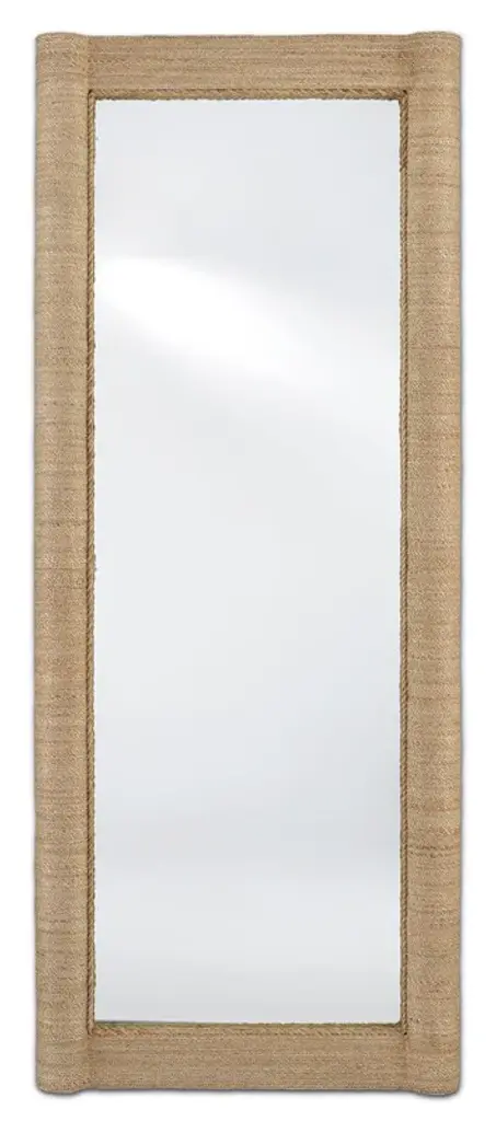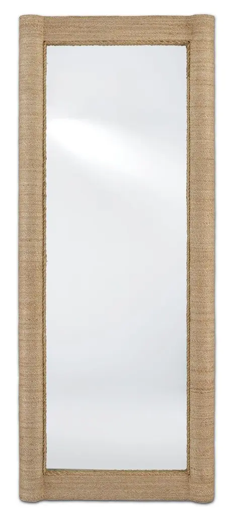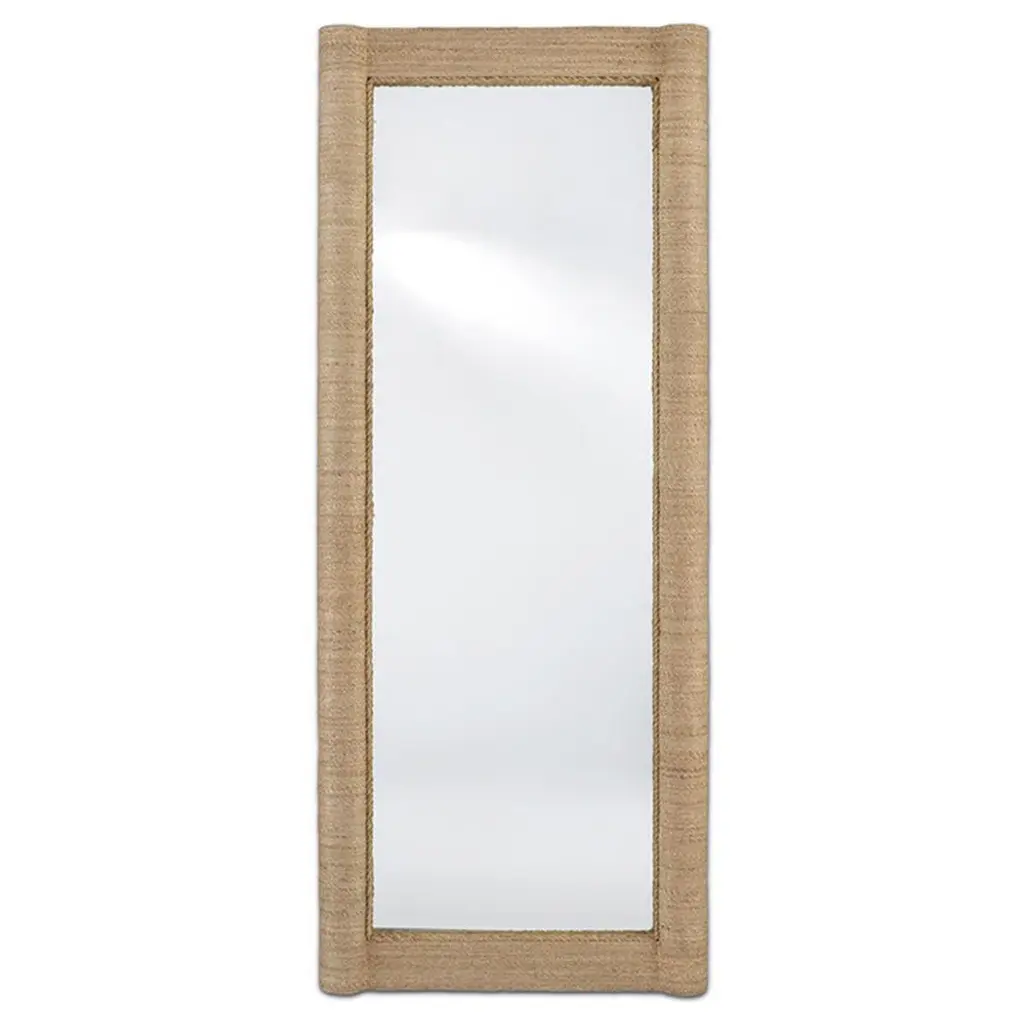 The Vilmar Floor Mirror from Currey & Company makes a bold coastal statement with its hand-applied Abaca rope frame. The natural texture and grand scale create a commanding presence flanked by curving columns on each side, blending organic warmth with refined craftsmanship. The mirror is designed and made with meticulous attention to detail, bringing a tropical, contemporary touch to any space while celebrating the beauty of natural materials.