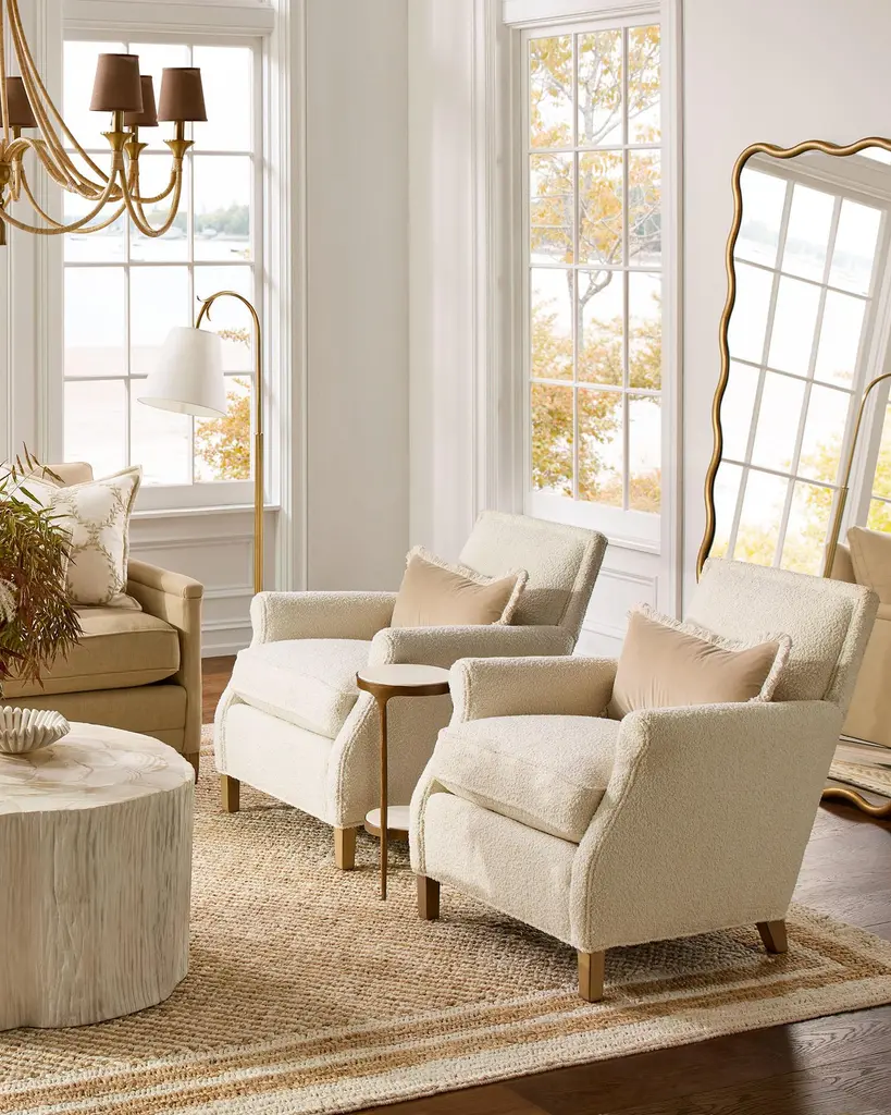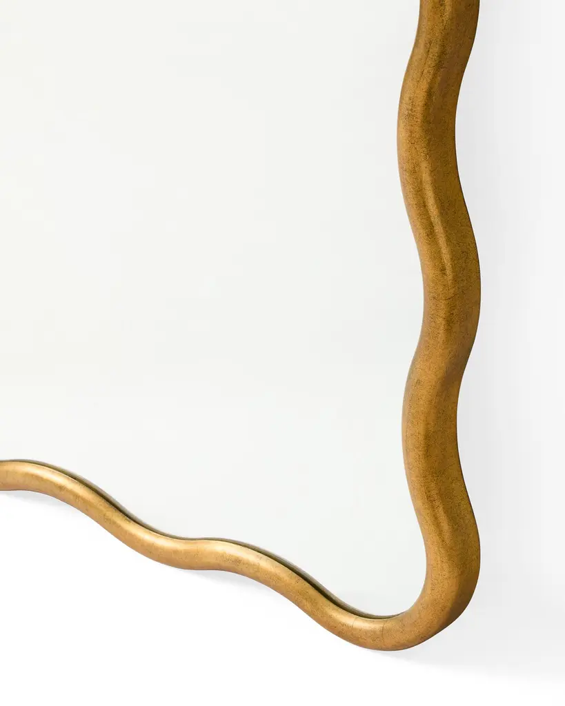 Crests and curves — an elegant shape with a wood frame. A gilded or salt finish.