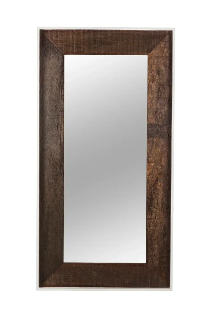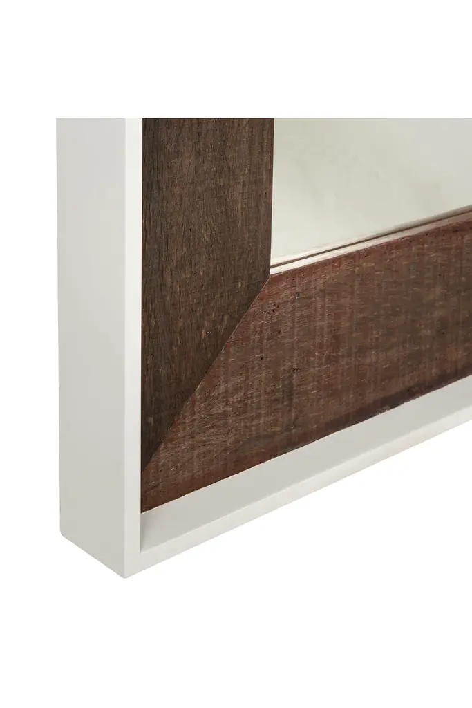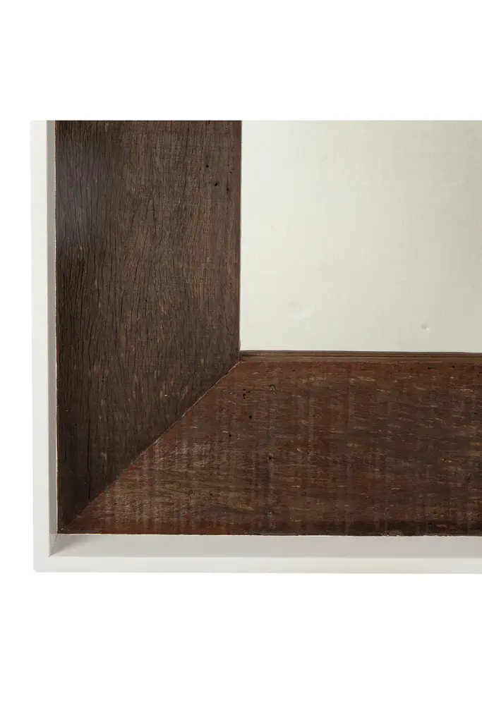 This large floor mirror is the perfect combination of classic and contemporary. A sleek, white lacquer case provides a beautiful textural contrast to the rich, earthy tones of reclaimed Brazilian peroba solids, which have been weathered by decades of sun and rain, adding a sense of history and timelessness to this piece.