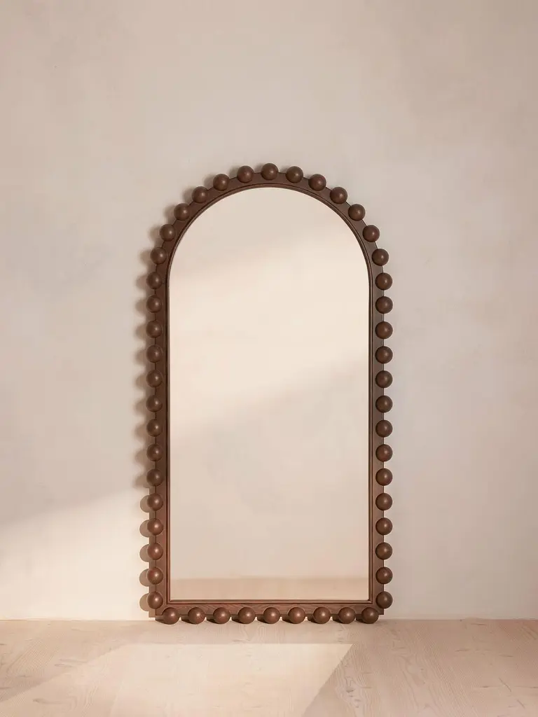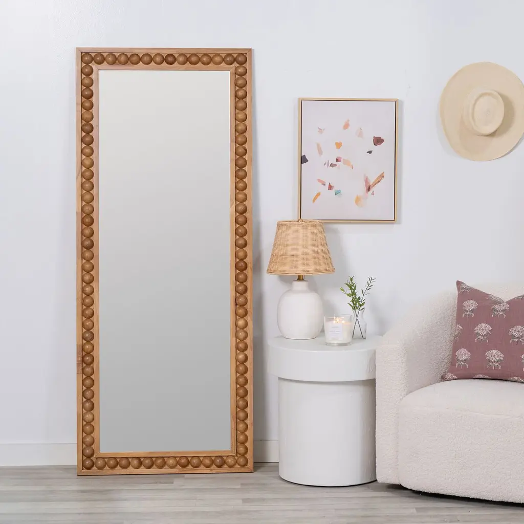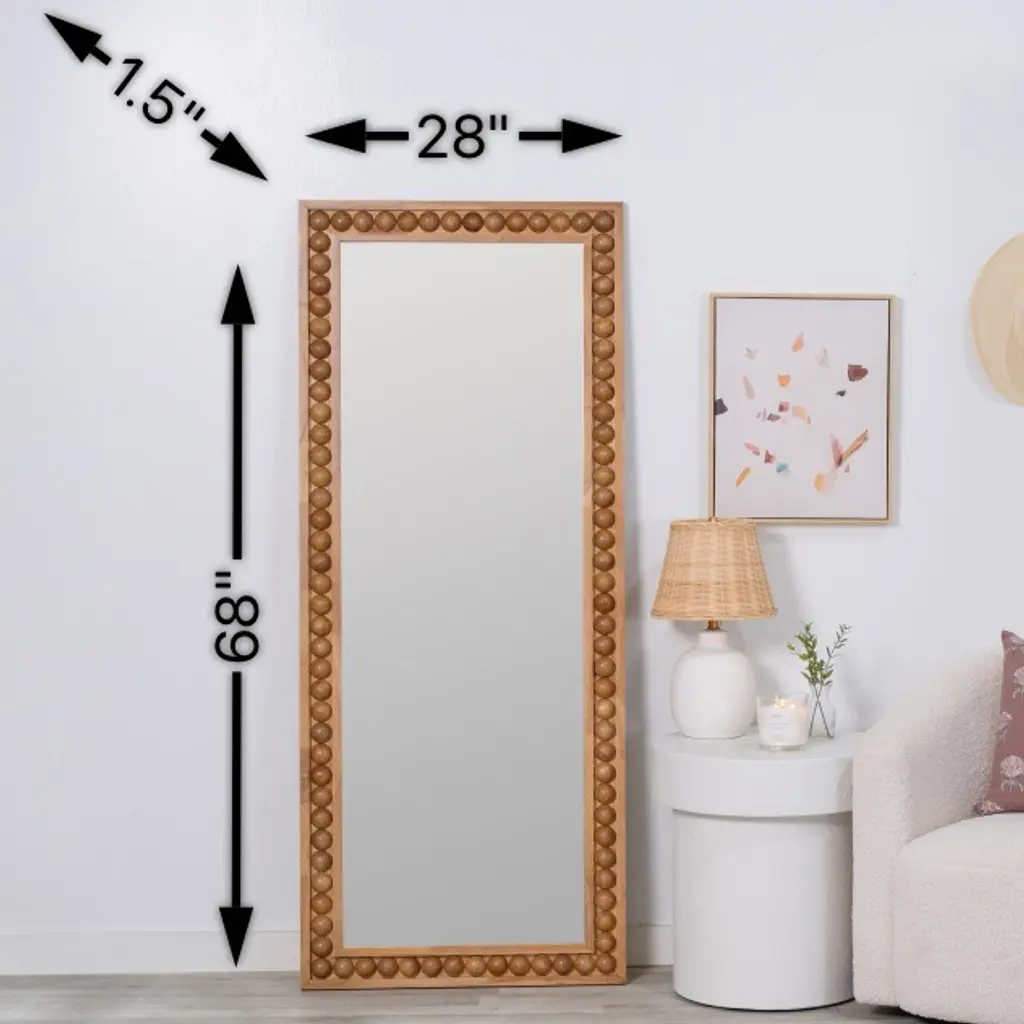 The beautiful Windsor Floor Mirror features intricate design details, paired with a hand-crafted frame. This piece is sure to add a statement to a space of any style.