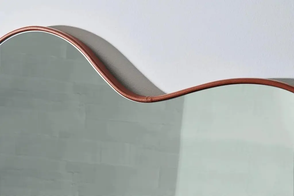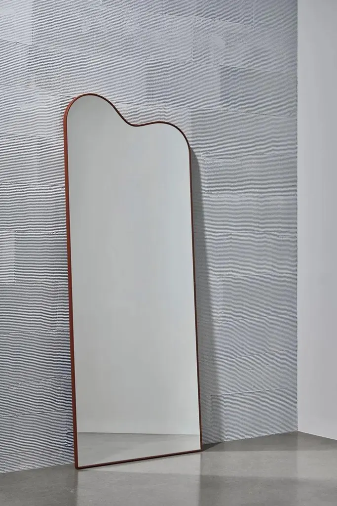 Wooden Construction, covered with leather.- Nappa Mocca leatherEn ouvert is the French name given to an open body alignment in which a ballet dancer faces the audience downstage. OUVERT, a 199cm high mirror, presents an equally open and self-confident stance in the eye of its beholder. Taking the name from the world of dance is fitting since OUVERT zeroes in on the playful and swinging lightness sought by NOTE's designers in their work: the world is serious enough – so it makes sense to leave it to the objects that enrich people’s everyday lives to espouse effortlessness and joie de vivre.En ouvert is the French name given to an open body alignment in which a ballet dancer faces the audience downstage. OUVERT, a 199cm high mirror, presents an equally open and self-confident stance in the eye of its beholder. Taking the name from the world of dance is fitting since OUVERT zeroes in on the playful and swinging lightness sought by NOTE's designers in their work: the world is serious enough – so it makes sense to leave it to the objects that enrich people’s everyday lives to espouse effortlessness and joie de vivre.What Wittmann and NOTE have playfully created together speaks to a finely-tuned sense of design coupled with handcrafted details, as well as the high quality of workmanship manifested in all of the products that leave the Wittmann workshops. New mirror OUVERT is encased by a leather frame, whose light padding creates additional sculptural depth. Four seams in twin-needle stitching set at fixed positions emphasise the proportions while highlighting the outstanding level of craftsmanship. An instantly likeable home accessory, the mirror either leans casually against the wall or is elegantly hung upon it using the mounting provided.
