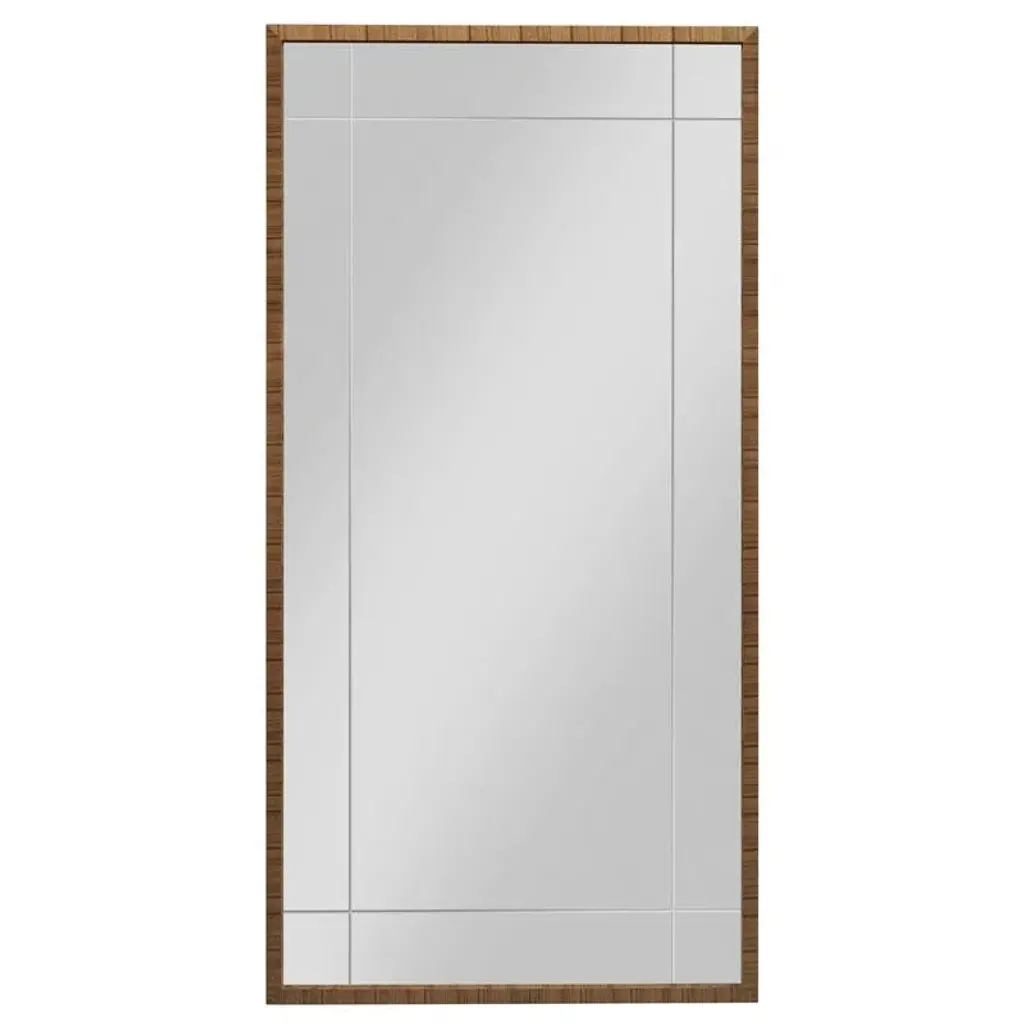 An elegant floor mirror with a delicate but strong outer frame that is veneered with richly figured paldao. The glass is incised to create an interesting divided look. Care Instructions: Wipe with a soft clean cloth