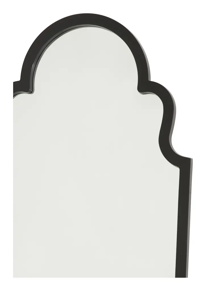 Get ready for the day with the help of our undeniably chic Yvette Floor Mirror. This full-length mirror features a slim, glossy black lacquered frame, which is crafted into a rounded, arched shape for a simple yet sophisticated feel. Designed to lean against the wall, Yvette would be perfect for planning your outfit of the day in the dressing room, powder room or bedroom — and even comes with anti-tipping hardware to ensure it stays right where you want it. •glossy black lacquered frame•anti-tipping hardware included •not recommended for hanging on wall Dimensions•32"W x 1.25"D x 74"H
