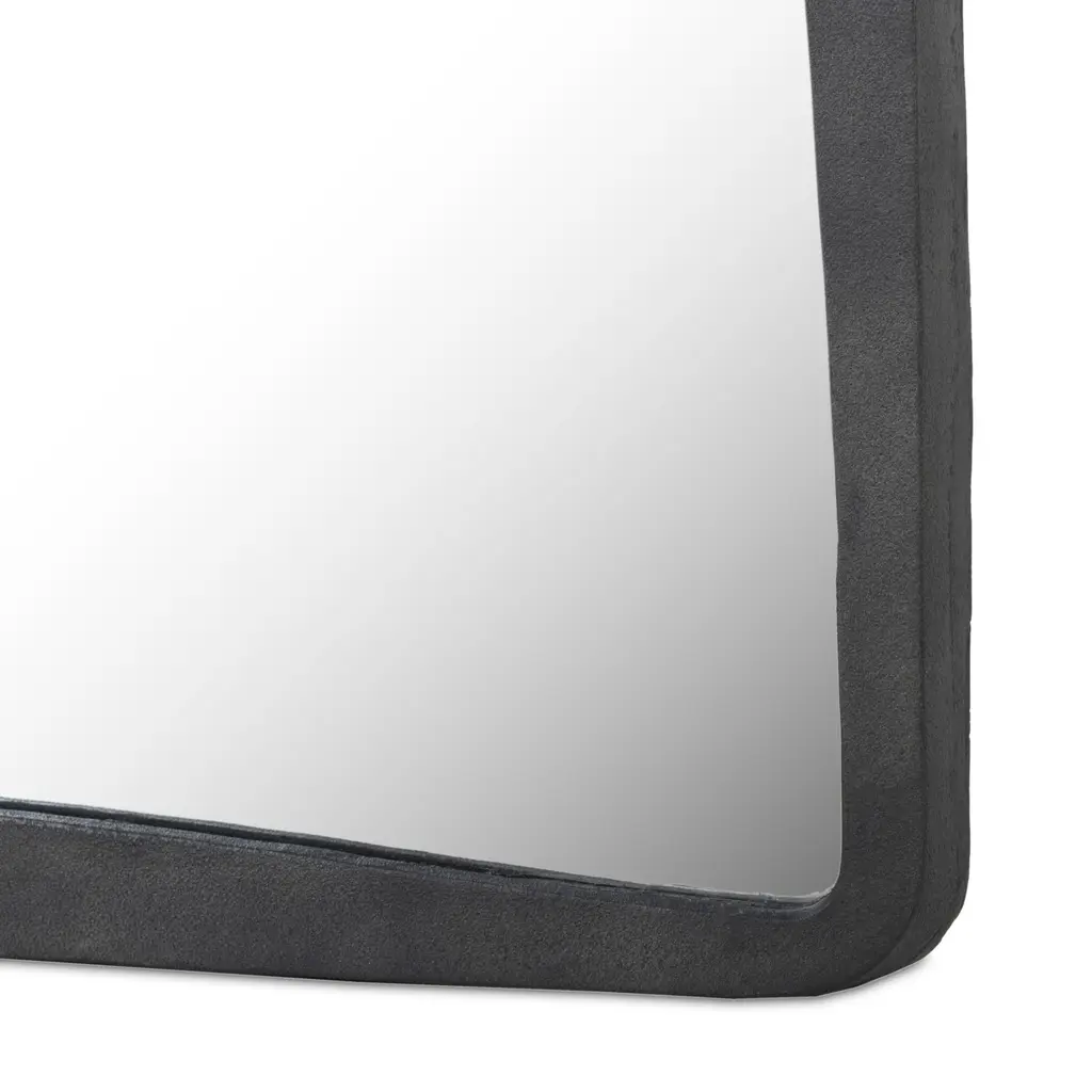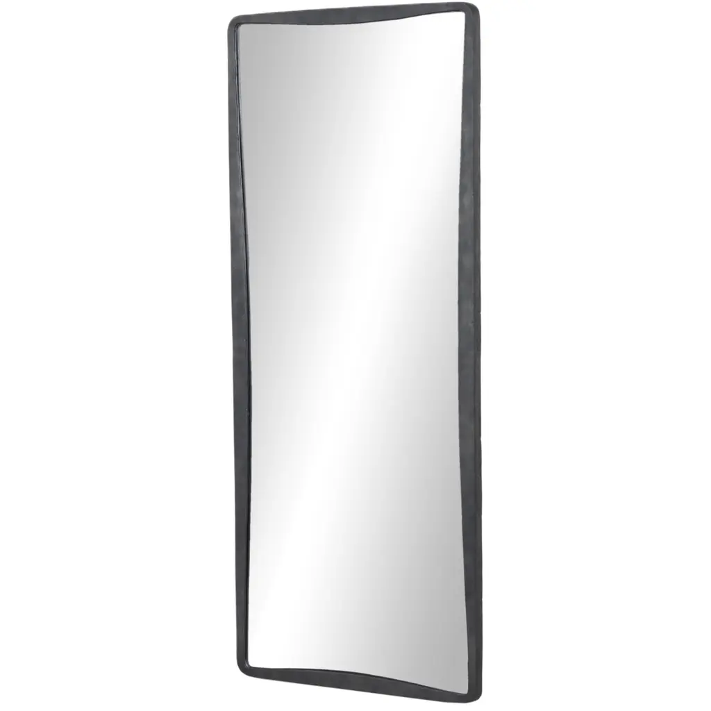 The Zyx Floor Mirror is a timeless piece that draws inspiration from elegant calligraphy, featuring a classic shape with a subtle hourglass bow. Its substantial cast aluminum framing is beautifully balanced by tapered corners, creating a harmonious blend of form and function. This mirror serves as a sophisticated addition to any space, offering both style and practicality.