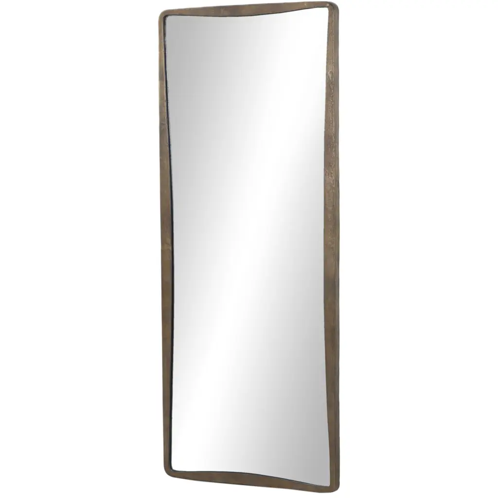 The Zyx Floor Mirror is a timeless piece that draws inspiration from elegant calligraphy, featuring a classic shape with a subtle hourglass bow. Its substantial cast aluminum framing is beautifully balanced by tapered corners, creating a harmonious blend of form and function. This mirror serves as a sophisticated addition to any space, offering both style and practicality.