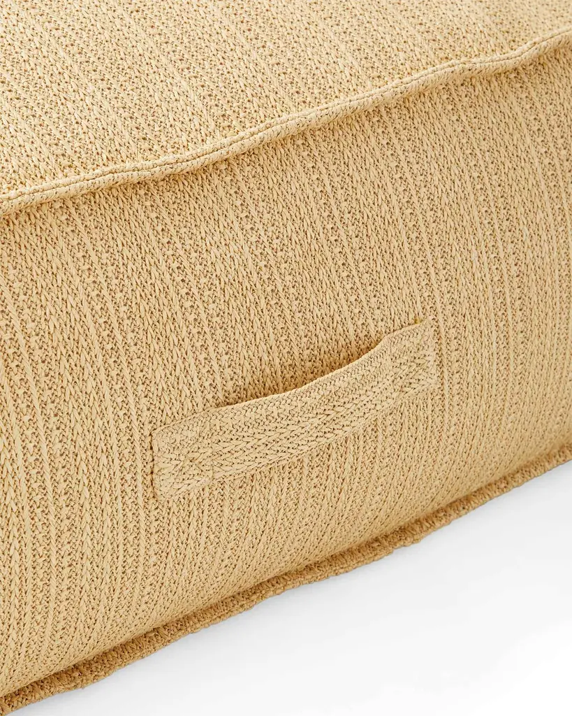 Peels of laughter. Summer heat. Portable luxury mimics raffia in woven fibers. Poolside comfort for big and small. The more the merrier.