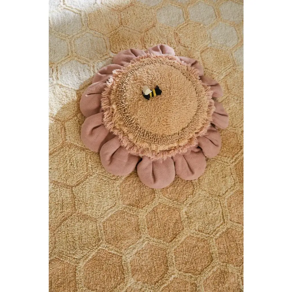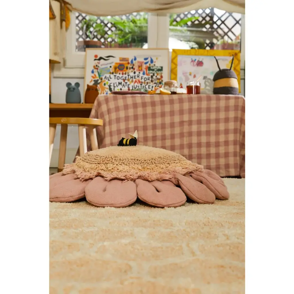 Blossom your room with our sunflower floor cushion! Shaped like a beautiful flower, it's perfect for lounging on while reading, playing, or relaxing. The circular design features honey-colored petals made of soft cotton canvas, with a golden tufted center and textured details, just like a real sunflower.
