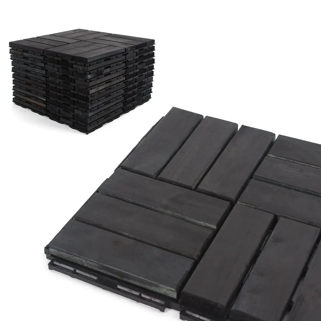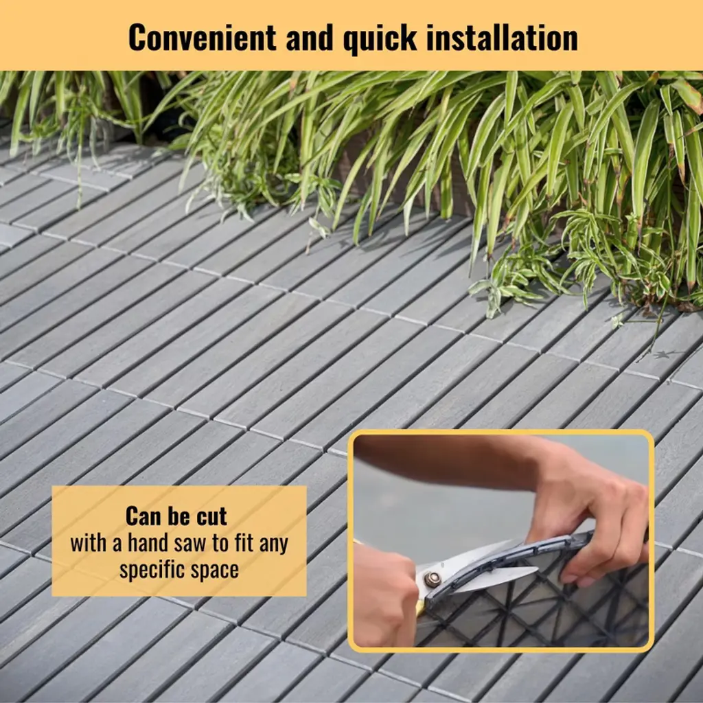 10 Pcs Interlocking Deck Tiles Striped Pattern, 12" X 12" Square Light Gray Acacia Hardwood Outdoor Flooring