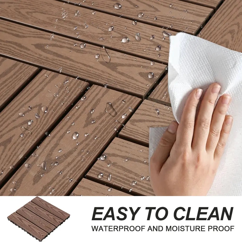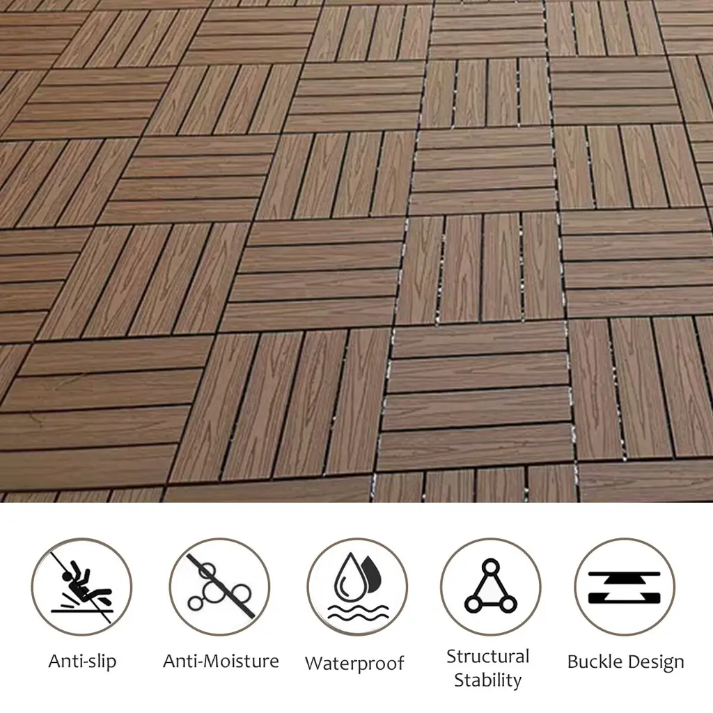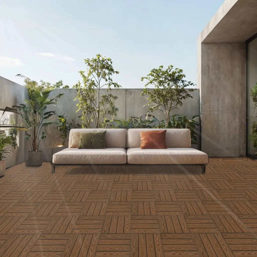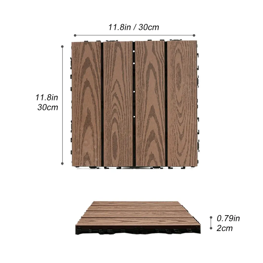 11.8 In. X 11.8 In. Square Wood-Plastic Composite Interlocking Flooring Tiles Pack Of 20 Tiles - Brown