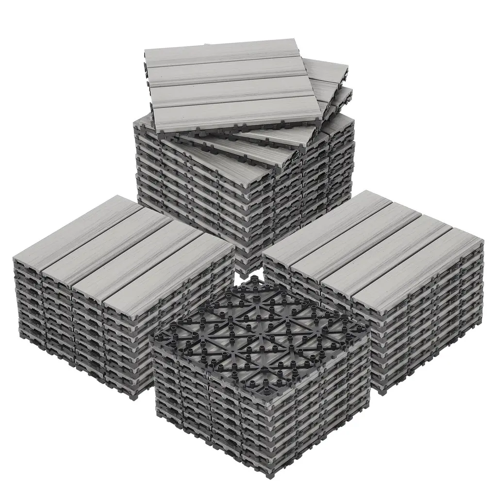 18 Pack Solid Wood Deck Flooring, Wood Interlocking Deck Tiles, 12 X 12 Inch Co-Extruded Interlocking Deck Tiles - Co-Extruded Ancient Wood