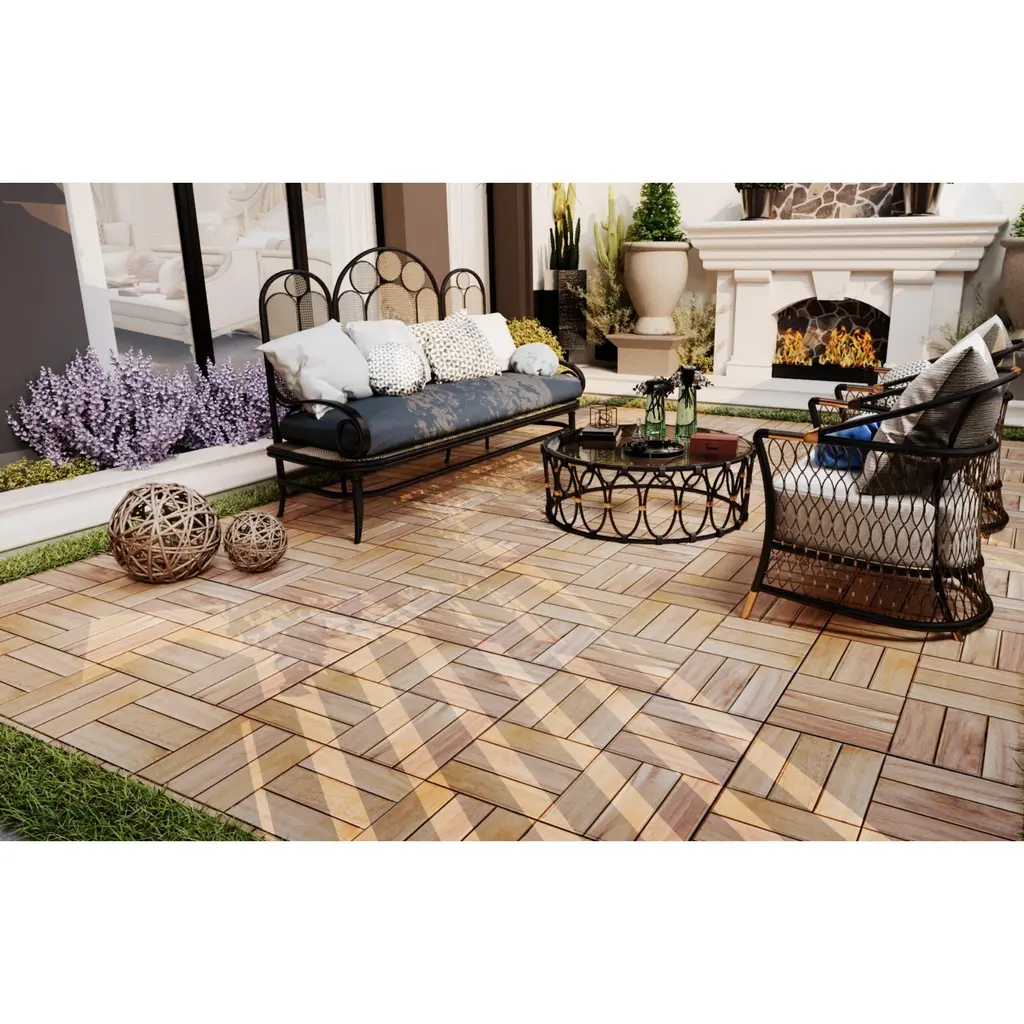 20 Pcs Interlocking Deck Tiles Checker Pattern, 12" X 12" Square Yellow Acacia Hardwood Outdoor Flooring For Patio, Bancony - Yellow