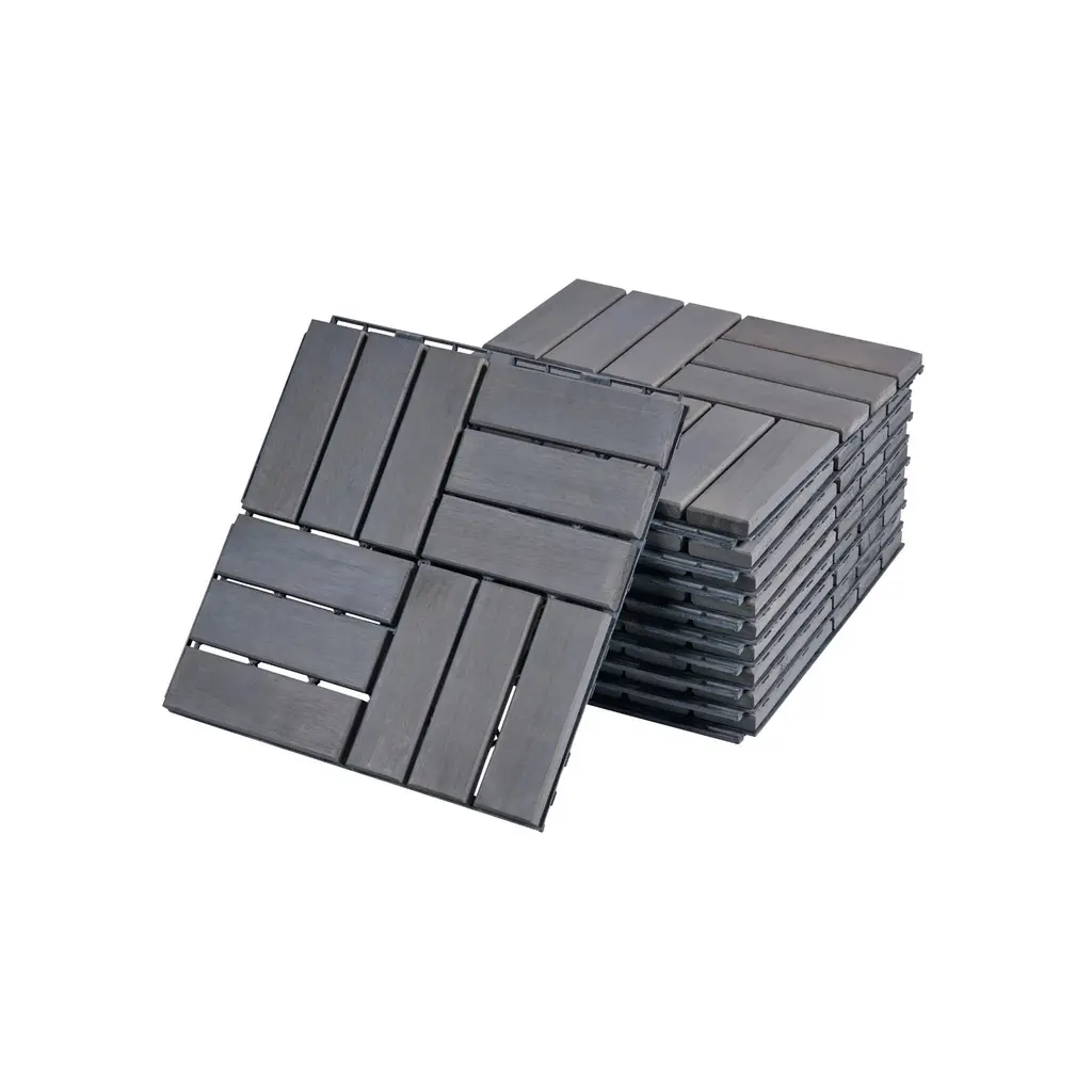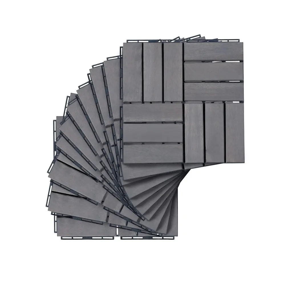 20 Pcs Interlocking Deck Tiles Checker Pattern, 12" X 12" Square Yellow Acacia Hardwood Outdoor Flooring - Light Gray