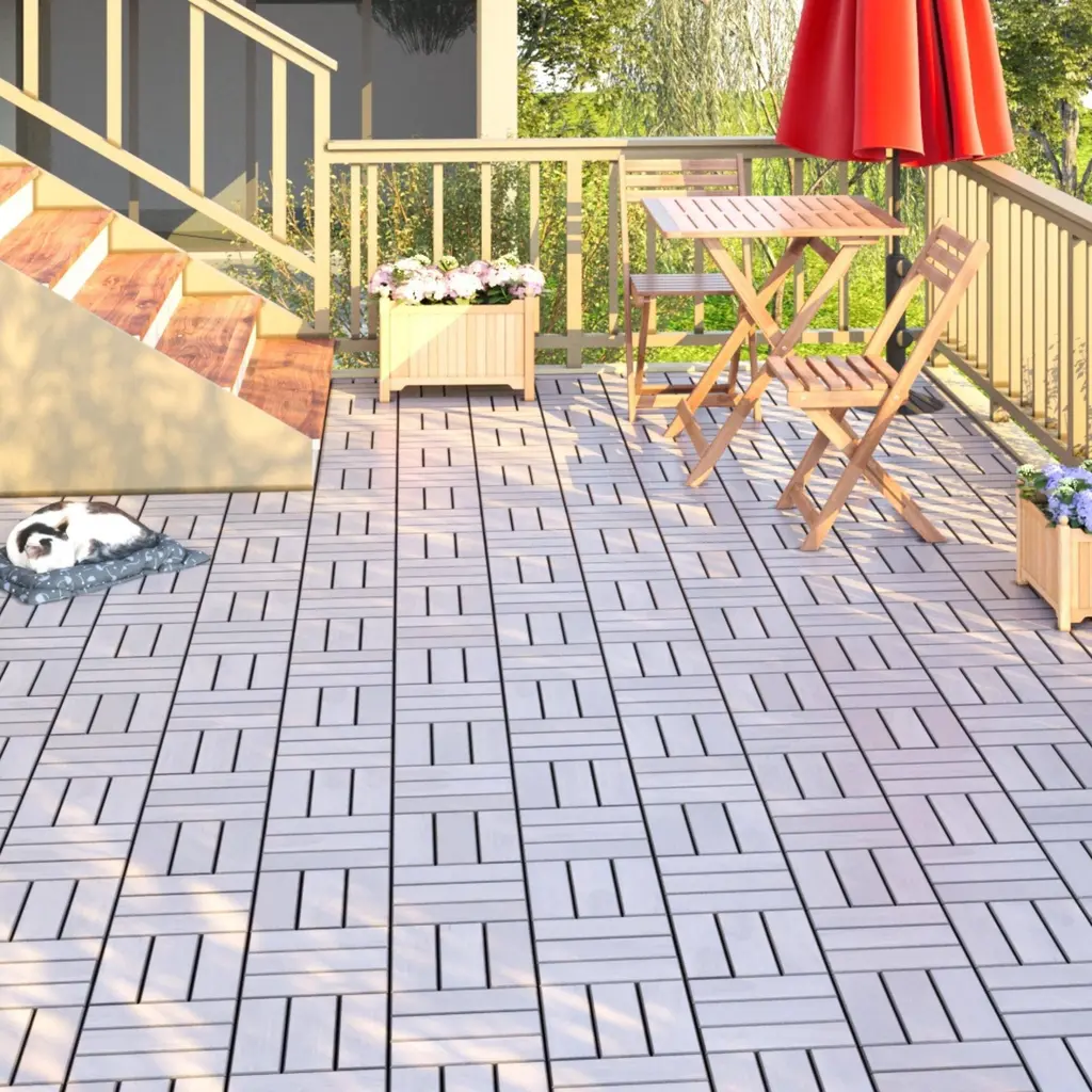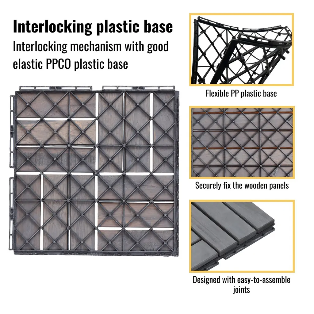 30 Pcs Checker Pattern Interlocking Deck Tiles 12" X 12" Square Acacia Hardwood Outdoor Flooring For Patio Balcony Poolside - Grey