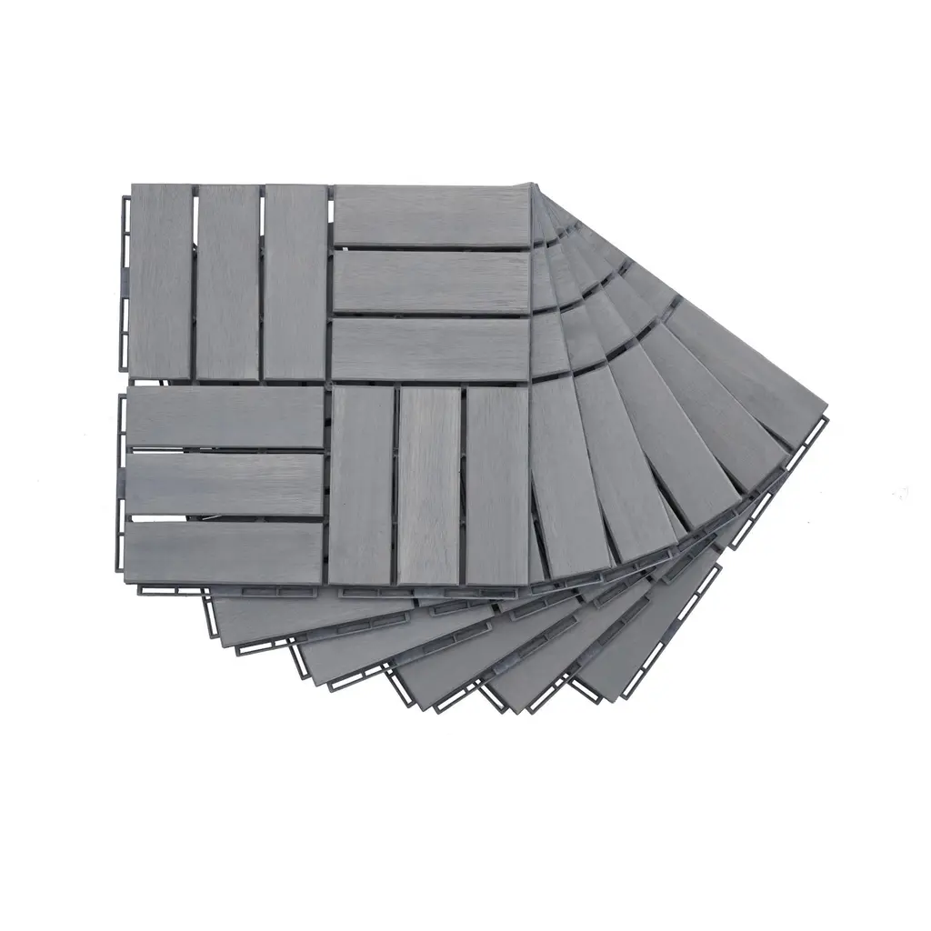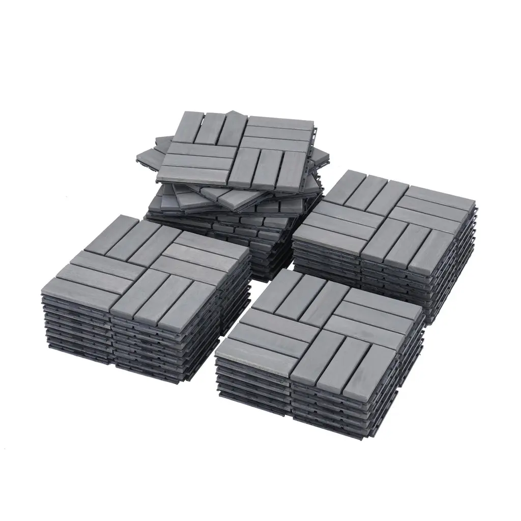 30 Pcs Interlocking Deck Tiles Checker Pattern, 12" X 12" Square Yellow Acacia Hardwood Outdoor Flooring For Patio, Bancony - Light Gray