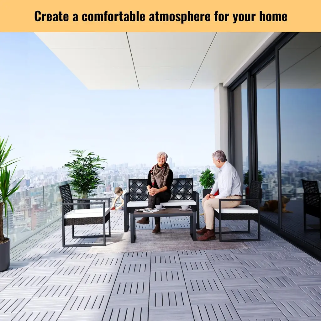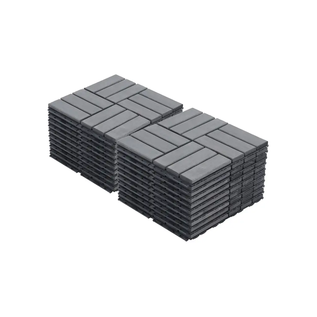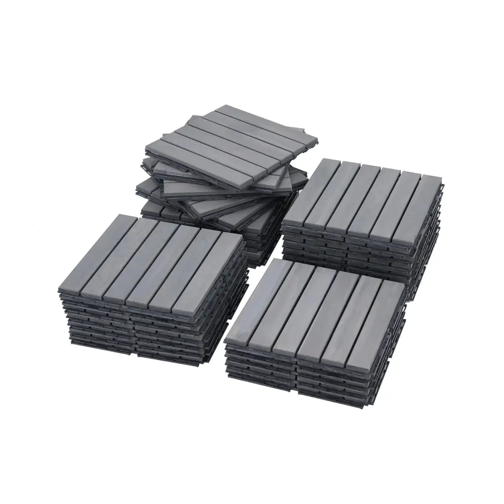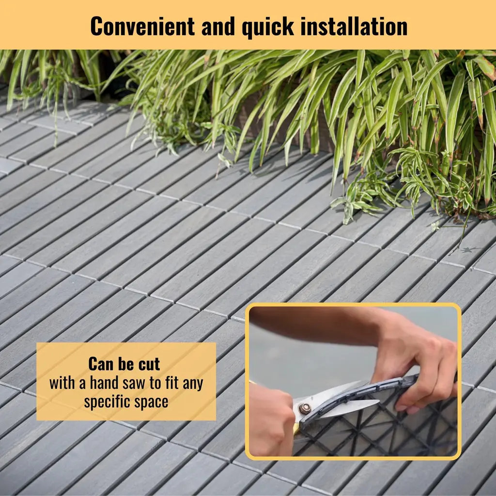 30 Pcs Interlocking Deck Tiles Striped Pattern, 12" X 12"square Acacia Hardwood Outdoor Flooring For Patio,bancony,pool Side - Light Gray