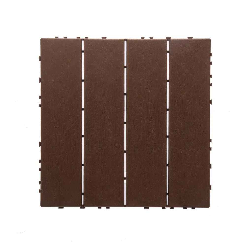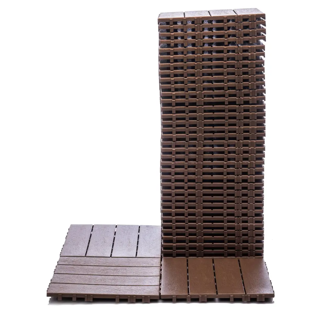 Features:Secure & Versatile: The advanced perimeter-locking system guarantees a secure fit, preventing edges from lifting or gaps from forming over time. Versatile and adaptable, the planks can be customized to fit any space—balconies, patios, basements, or commercial areas—without the limitations of traditional flooring. Mix and match layouts effortlessly to create a flawless, high-end finish tailored to your vision.3D Wood Grain: "Experience the Natural Beauty of Wood Without the Maintenance! Our premium 3D Wood Grain deck tiles feature hyper-realistic texture technology that perfectly replicates authentic wood grains. Each 11.42"×11.42" tile showcases deep embossed patterns with true-to-life wood knots and growth rings for stunning dimensional depth. Our composite wood flooring is designed for effortless installation, saving you time and hassle. With its innovative interlocking system, you can easily snap the planks together without the need for specialized tools or professional help. This user-friendly design ensures a convenient setup, whether you're a DIY enthusiast or a busy homeowner looking for a quick upgrade. Built to last, our flooring combines the strength of wood and the resilience of plastic to withstand heavy foot traffic, extreme weather, and everyday wear and tear. Unlike traditional wood, it resists warping, cracking, and splintering, maintaining its pristine appearance for years. The smooth, splinter-free surface is gentle on bare feet while offering superior durability against scratches and stains. Hygiene and safety are paramount—our flooring features an antimicrobial surface that inhibits the growth of mold and bacteria, making it ideal for homes with children or pets. The waterproof and rot-resistant material ensures no swelling or damage from spills or humidity, perfect for kitchens, bathrooms, and outdoor spaces. Plus, its low-maintenance design means a simple wipe-down is all it takes to keep it looking brand new. Free from harmful chemicals like formaldehyde, paints, and solvents, our planks emit no toxic odors, ensuring immediate use in any indoor environment. The eco-friendly composition provides peace of mind for health-conscious families while delivering the aesthetic appeal of real wood.