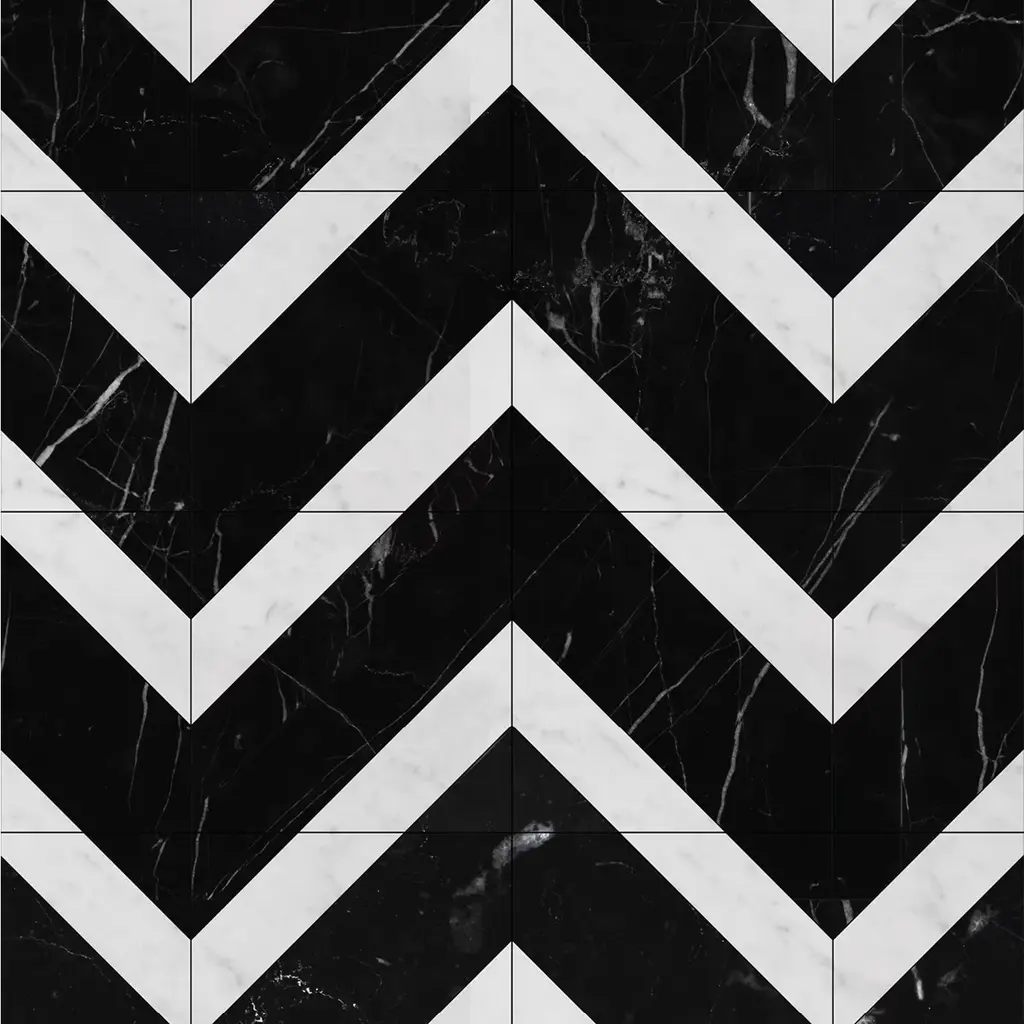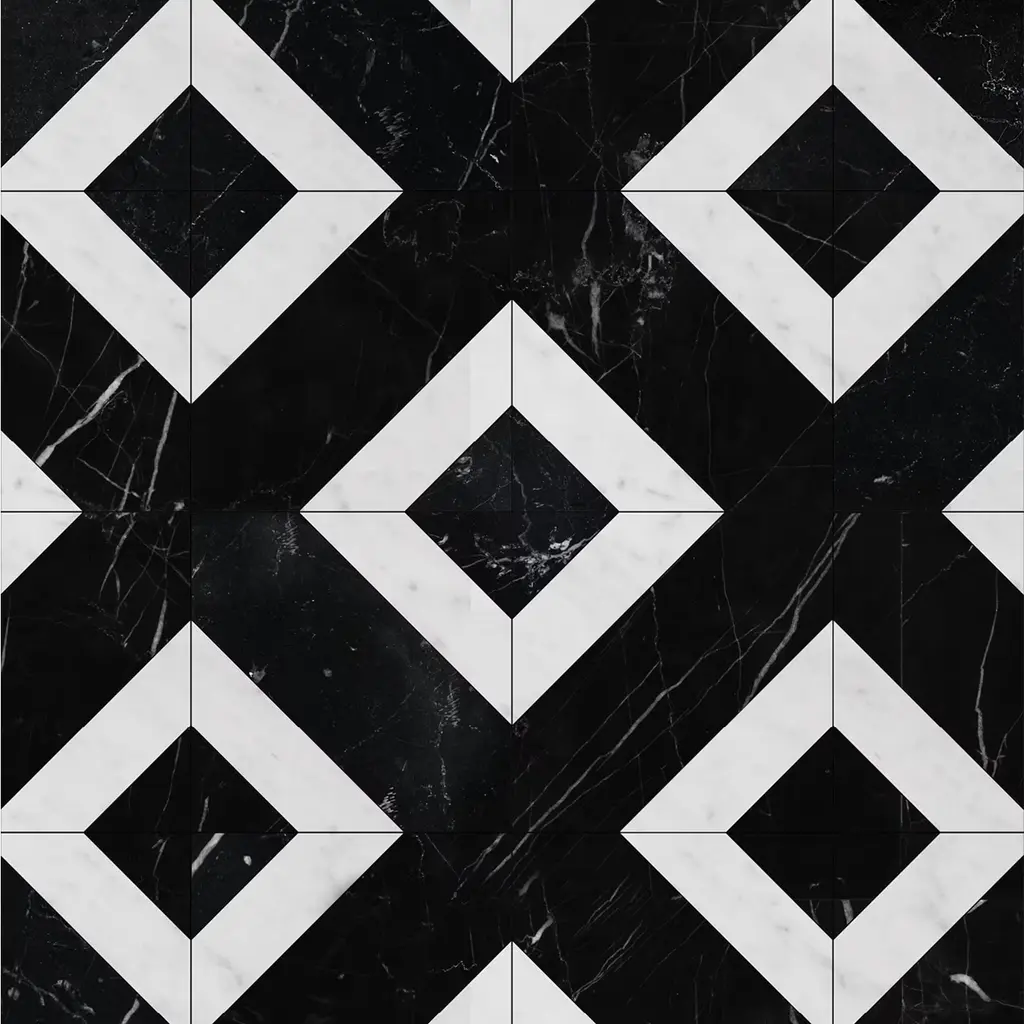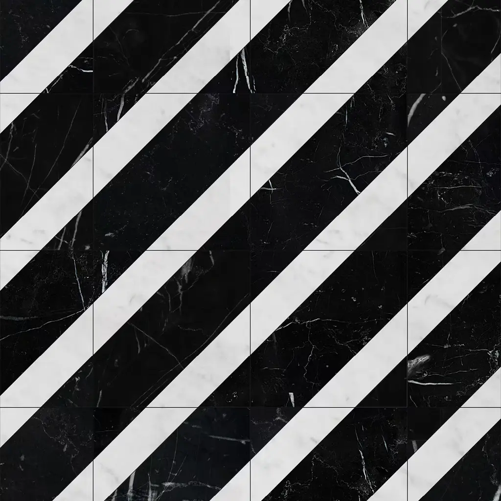 Pricing is per piece. A precious collection of marble floorings designed to create environments of sophisticated elegance and timeless beauty. The single elements are available in monochrome versions (white Carrara or black Marquinha marble) or decorated with contrasting geometric patterns, inspired by the purity of lines, the perfection of the triangle, and the absolute harmony of the square. Please get in touch with the concierge service for more information.