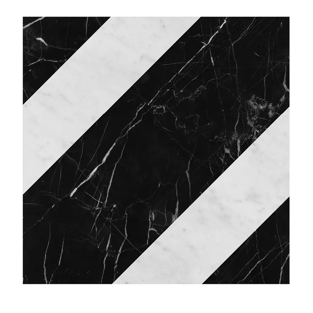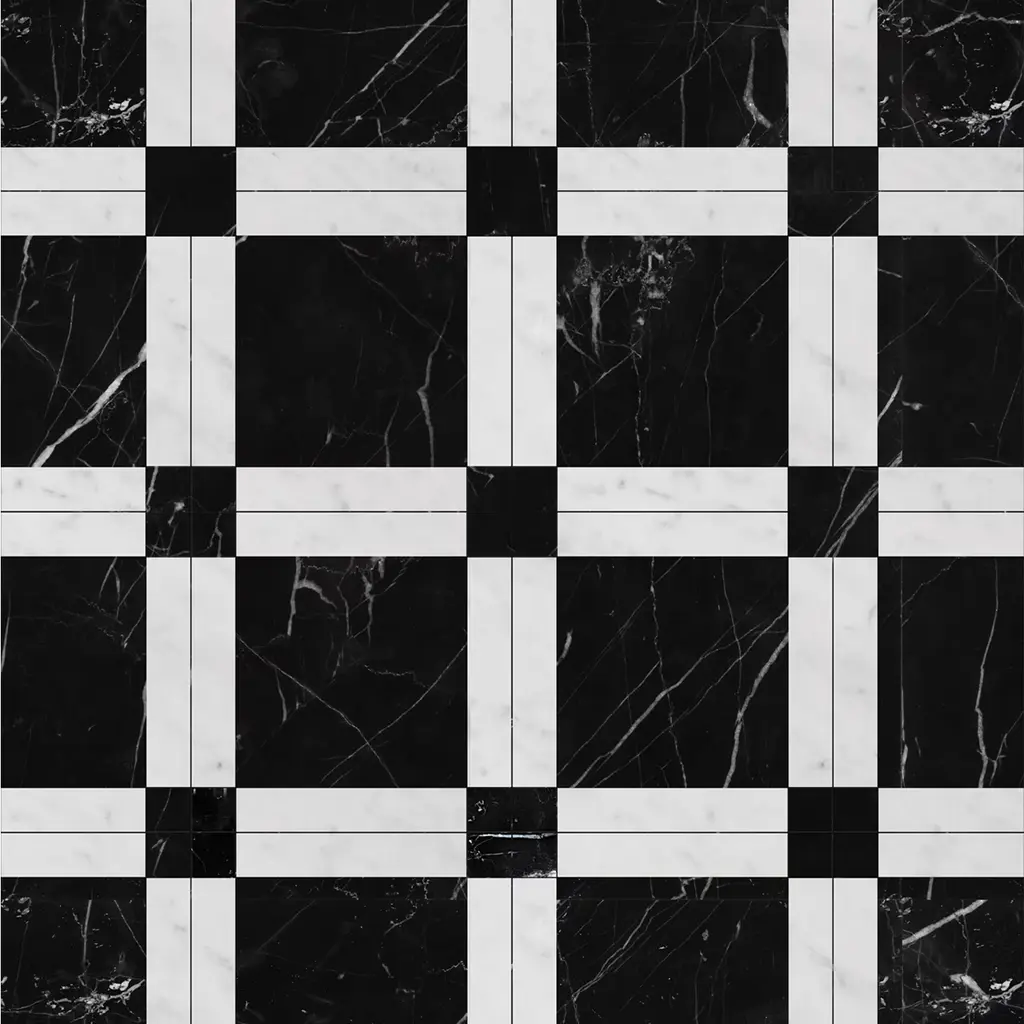 Pricing is per piece. A precious collection of marble floorings designed to create environments of sophisticated elegance and timeless beauty. The single elements are available in monochrome versions (white Carrara or black Marquinha marble) or decorated with contrasting geometric patterns, inspired by the purity of lines, the perfection of the triangle, and the absolute harmony of the square. Please get in touch with the concierge service for more information.