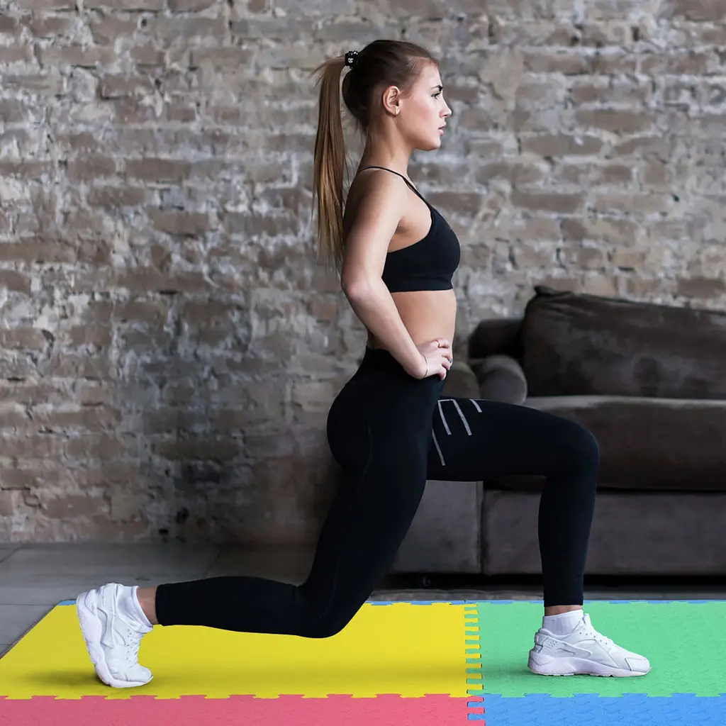 This baby play mat with anti-slip design is the perfect present for you and your kids! With our gym floor mat, you can do your fitness, like yoga, exercises, martial arts or use it as a base for your office furniture. Our mats are made of high quality EVA foam to be environment-friendly and non-toxic for long-time usage. And this portable floor mat can be folded for easy carrying and store. It can be used as yoga mat and picnic mat as well and will be the eye-catching addition for indoor and outdoor usage. Besides, this baby play mat is easy to clean with a soft damp cloth. FeatureLeave pattern to protect from slippery and ensure better safety Environment-friendly EVA material to be good for health sturdy material to be used for years without deformation or fracture High performance of reducing noise to enjoy peaceful life Colorful design as a wonderful decoration for your room Total 12 pieces combined into a large one for free activity area 24 Side strips to rounded the border, fitting perfectly with wall edge Interlocking design easy to detach and pile up for easy storageSpecificationColor: RED, YELLOW, GREEN, BLUE Material: EVA Total Coverage: about 52 Square Feet One Piece Dimension: 25'' x 25''(L x W) Thickness: 0.5'' Net Weight: 1LBS Package includes: 12 x Floor Mats 24 x Side Strips