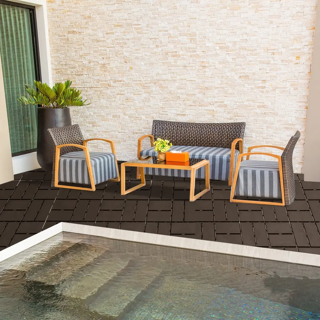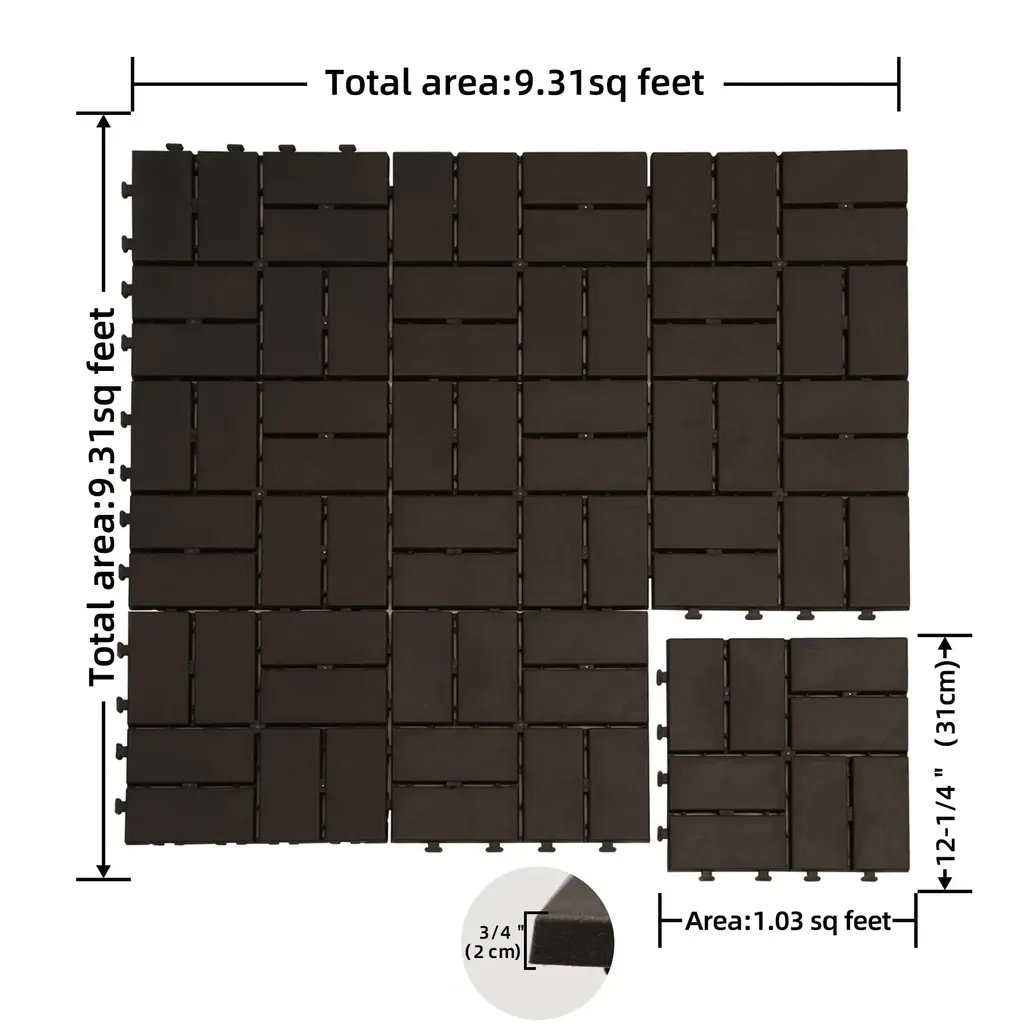 Domi 12" X 12" Plastic Interlocking Deck Tiles – Waterproof Outdoor Flooring For All-Weather Use - 44-Piece - Dark Brown