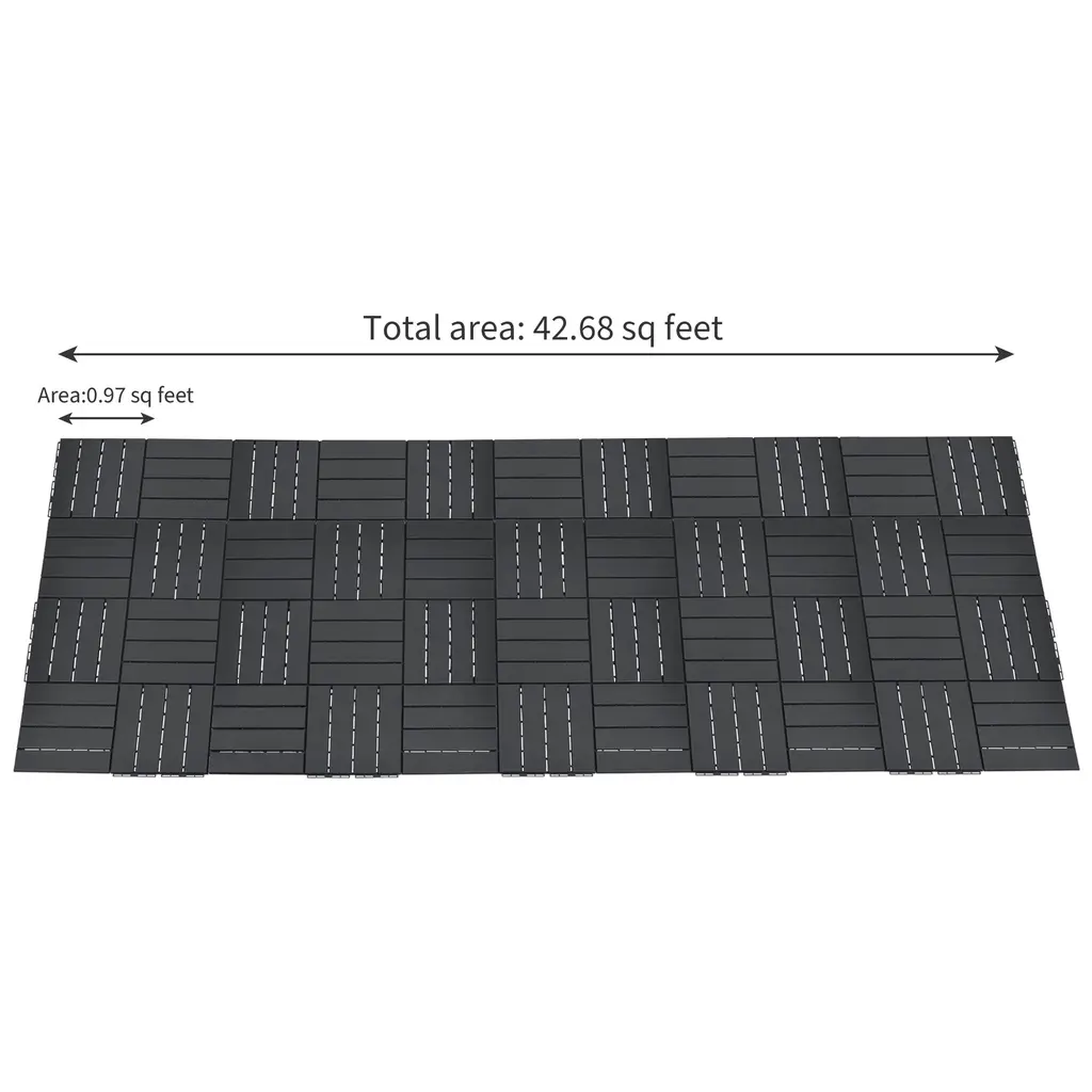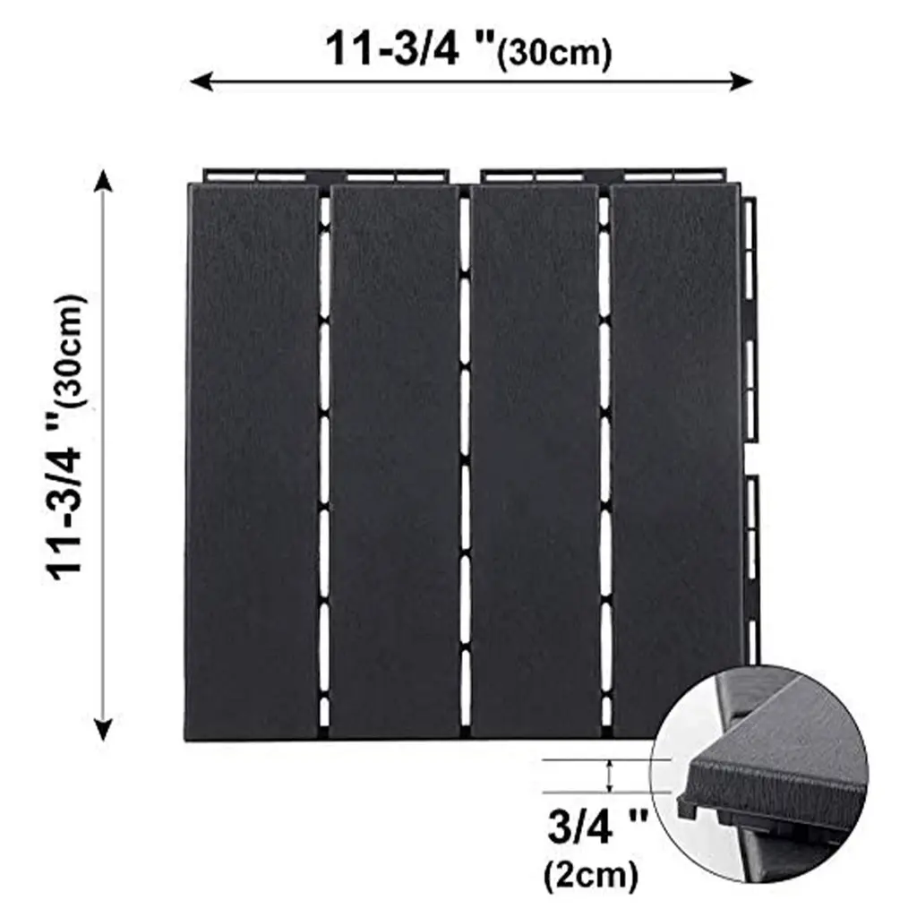 Domi Outdoor Living Patio Deck Tiles – 12" x 12" Composite Interlocking Decking Tiles Upgrade your outdoor space effortlessly with these durable and stylish four-slat plastic deck tiles. Designed for easy installation and long-lasting use, they’re ideal for patios, balconies, porches, and more.Available Options • Colors: Brown, Gray • Sizes: 9-Piece, 27-Piece, 36-Piece, 44-Piece SetsKey Features • Open Drainage Design – The underside features a smart open-grid pattern that promotes water drainage and airflow, helping prevent tile damage and reducing the risk of slipping. • Effortless Snap Installation – No tools, nails, or glue required. The click-together design ensures a quick and secure setup. • Low Maintenance & Waterproof – Lightweight and easy to clean with just a broom or garden hose. Ideal for both hard and semi-hard surfaces. • Versatile Applications – Perfect for enhancing patios, balconies, pool areas, porches, lawns, and more. Also great for creating distinct zones for dining or lounging.Need assistance? Our customer service team is here to help! Whether you have questions about installation, product options, or your order, feel free to contact us—we’ll respond as quickly as possible to ensure a smooth and satisfying experience.