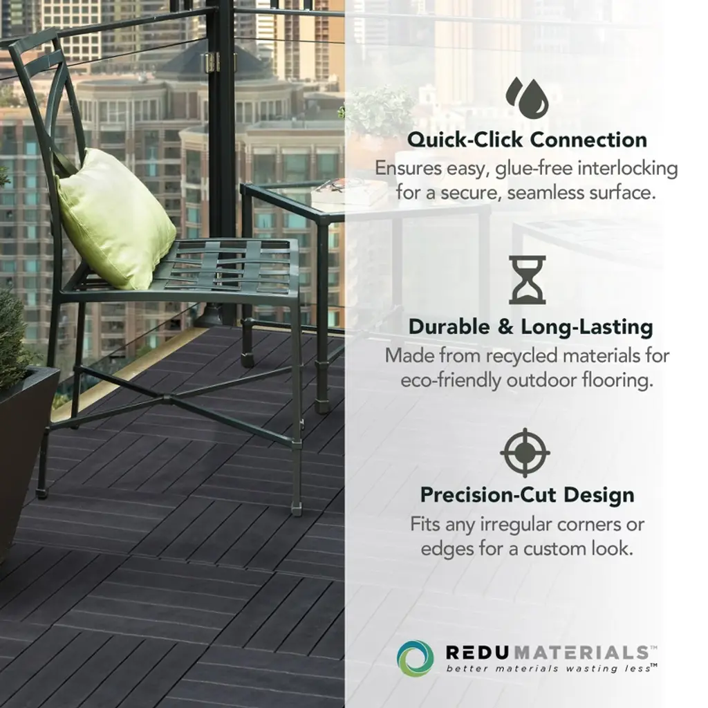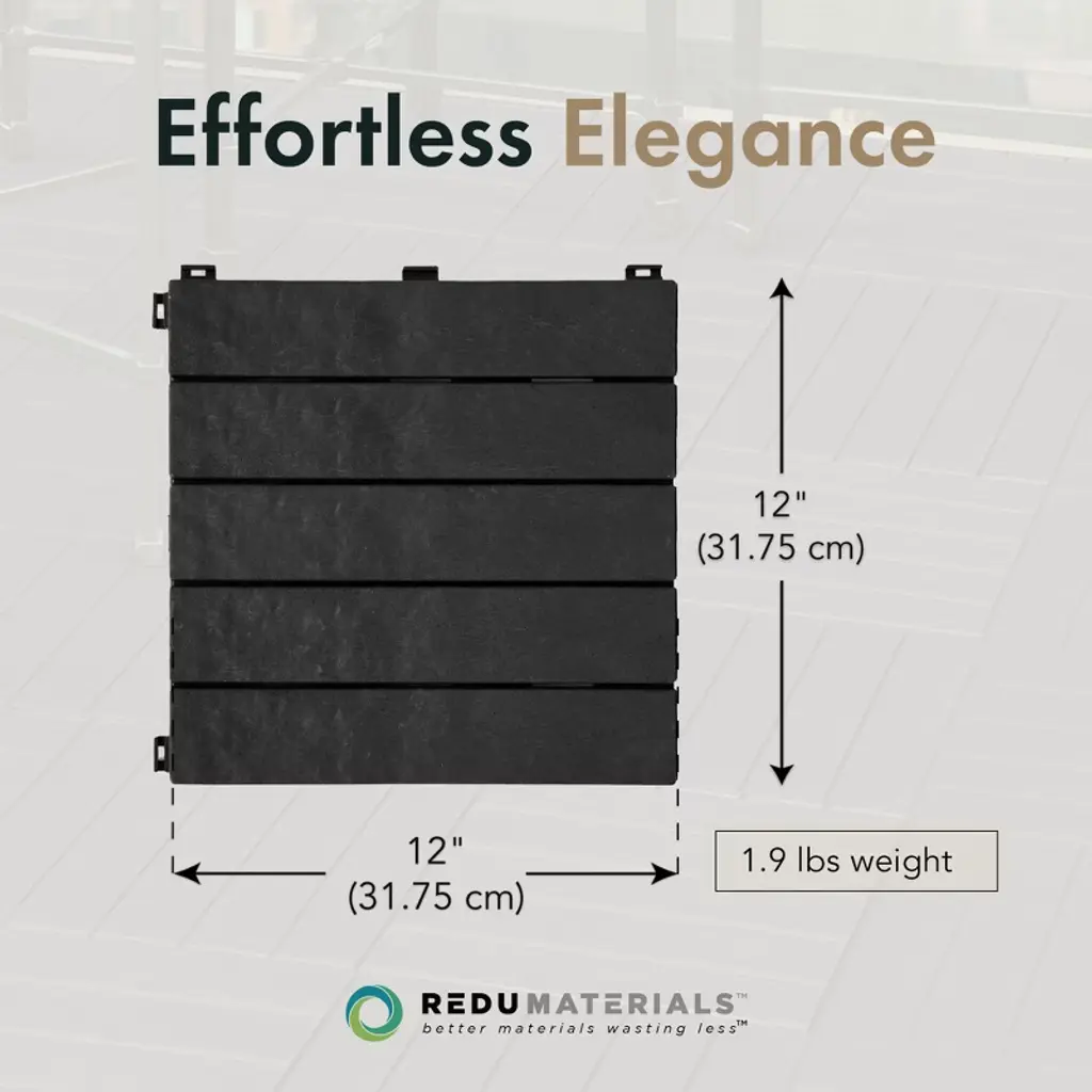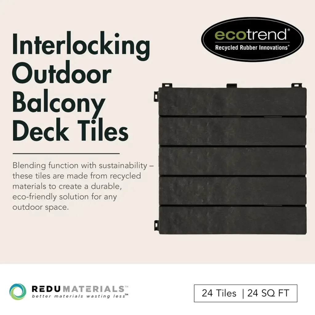 Ecotrend 12"x12" Outdoor Interlocking Balcony Deck Tiles, Waterproof, Lightweight, Plastic Flooring, Patio Pavers, Slate Black (24 Pack)
