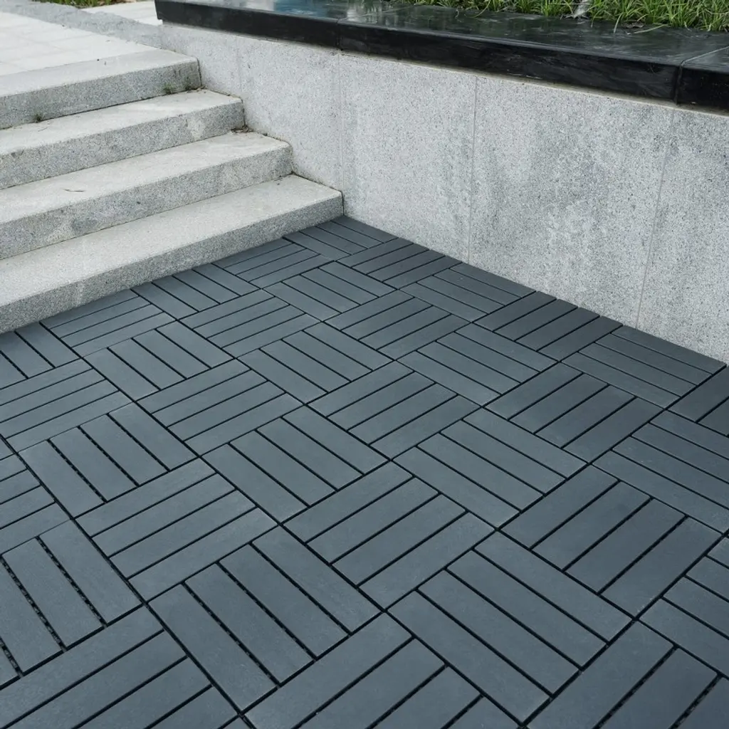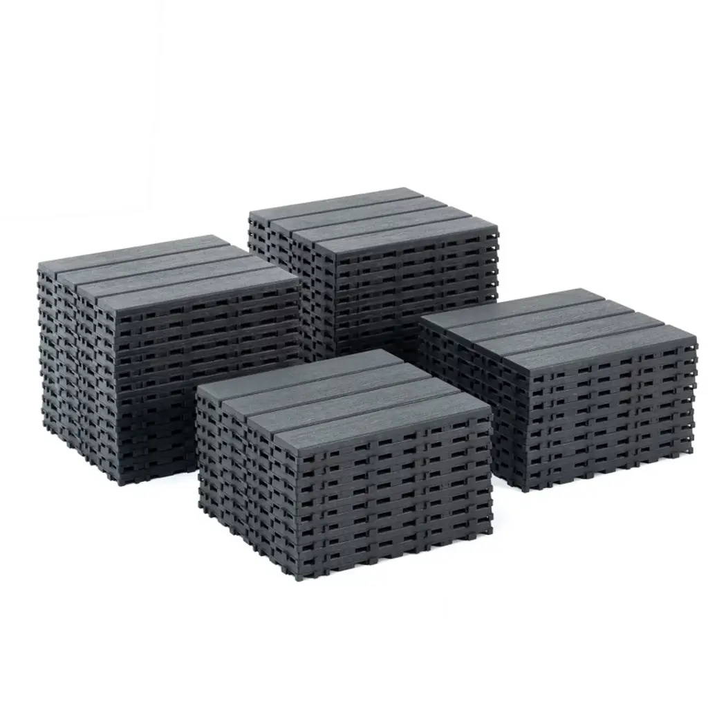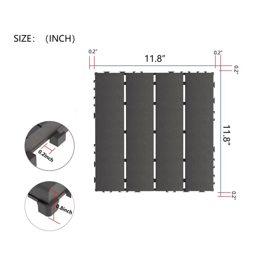 Glasflength Carpet Tiles 44 Pack 12" Interlocking Deck Tiles, Vertical Pattern Waterproof Outdoor Flooring For Patio Balcony, Gray, 12"*12"*0.8"
