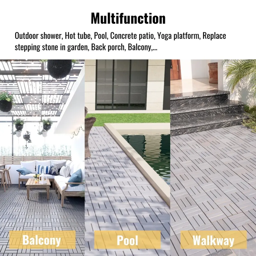 Gulches 30 Pcs Interlocking Deck Tiles Checker Pattern, 12" X 12" Square Light Gray Acacia Hardwood Outdoor Flooring For Patio, Bancony, Pool Side