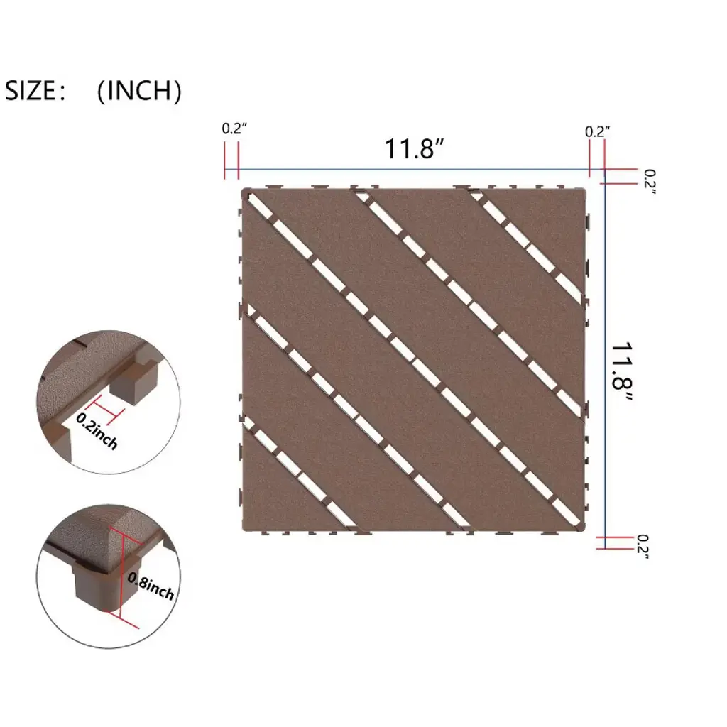 Ktmbdw Interlocking Deck Tiles, 44 Pack 12"x12" Waterproof Outdoor Flooring All Weather Use, Floor Tiles For Poolside Balcony Backyard, Brown