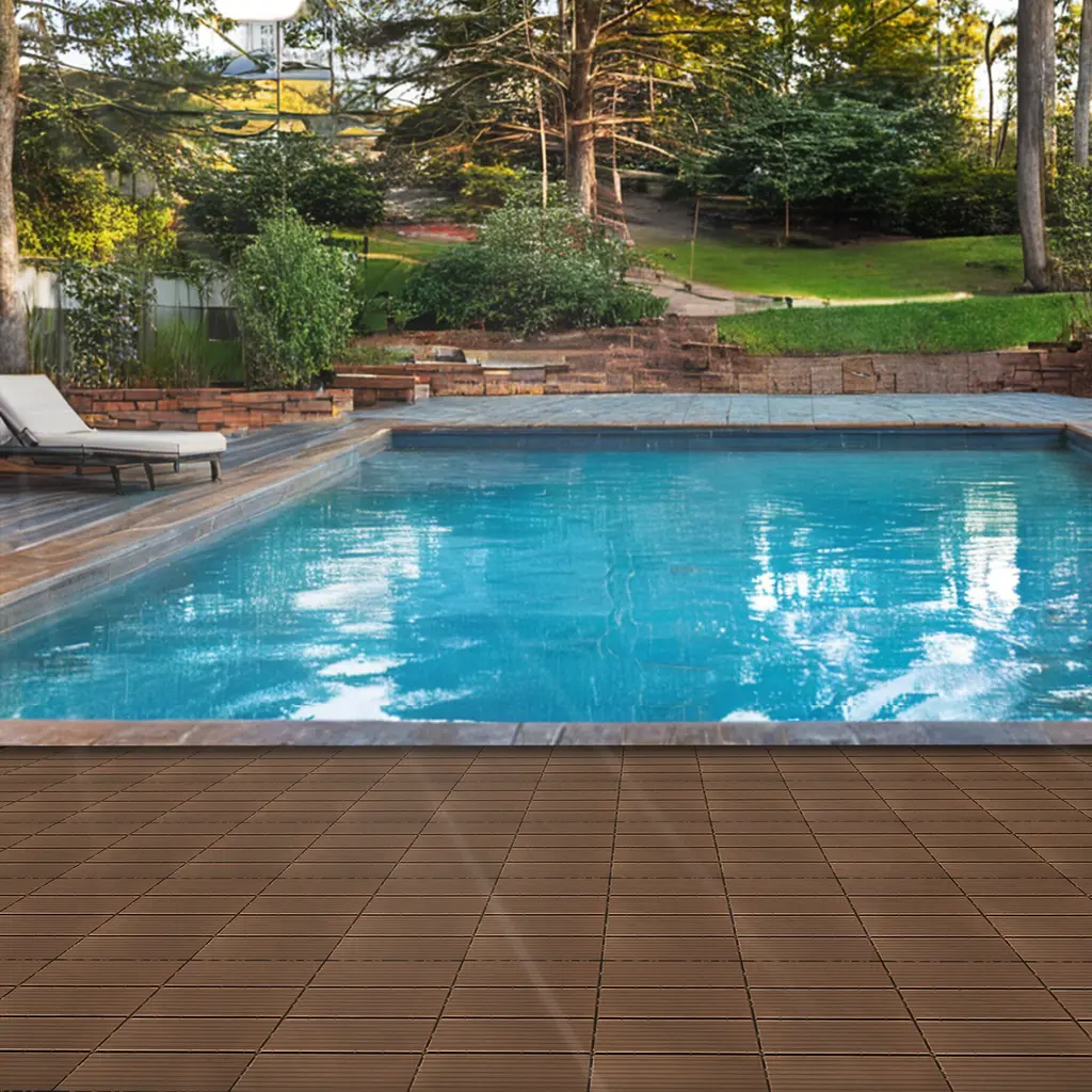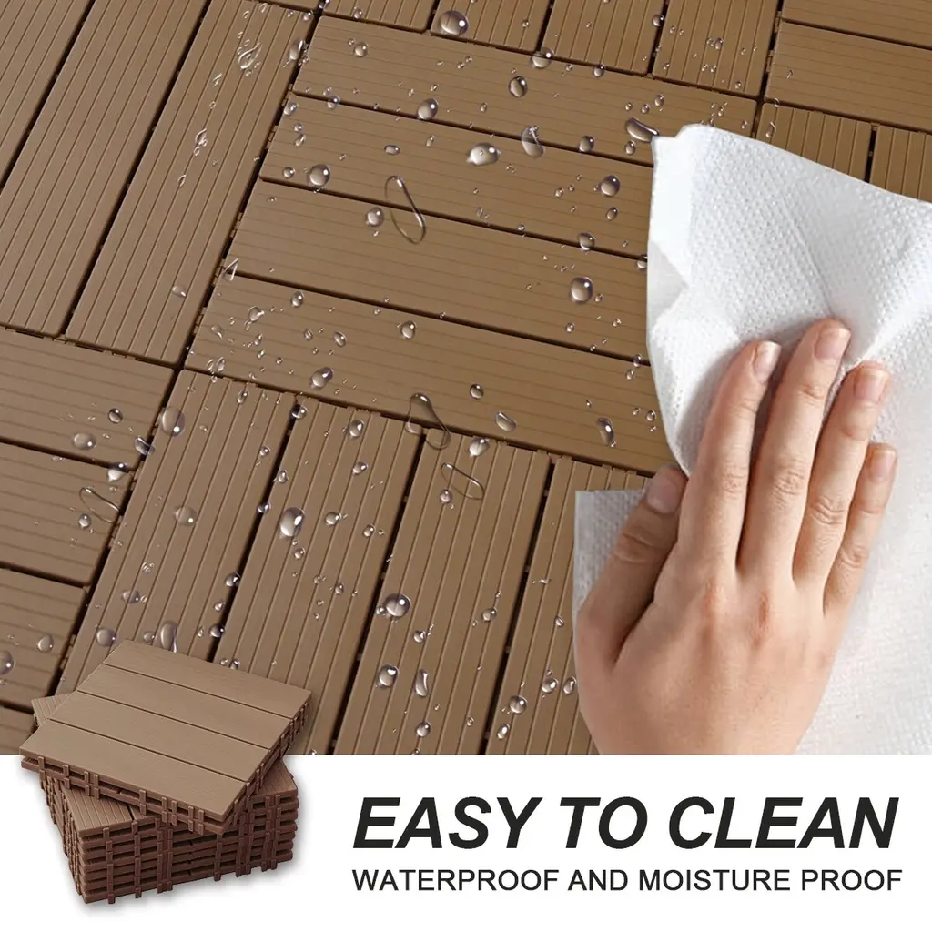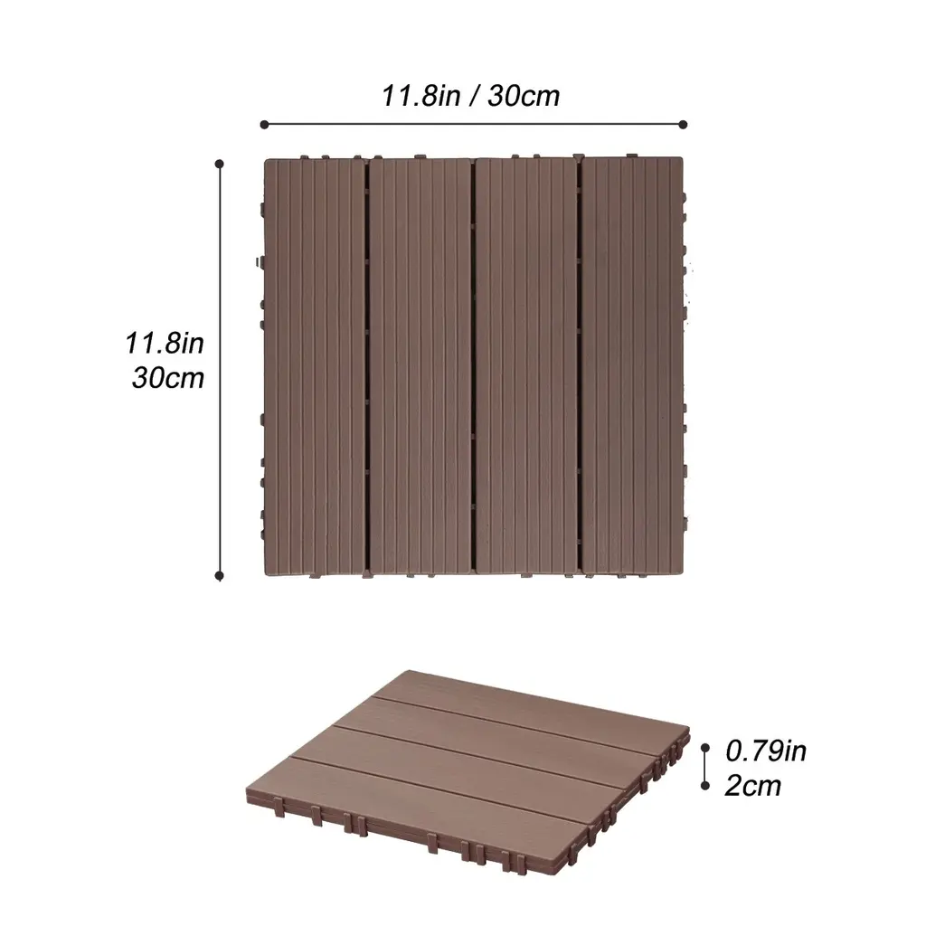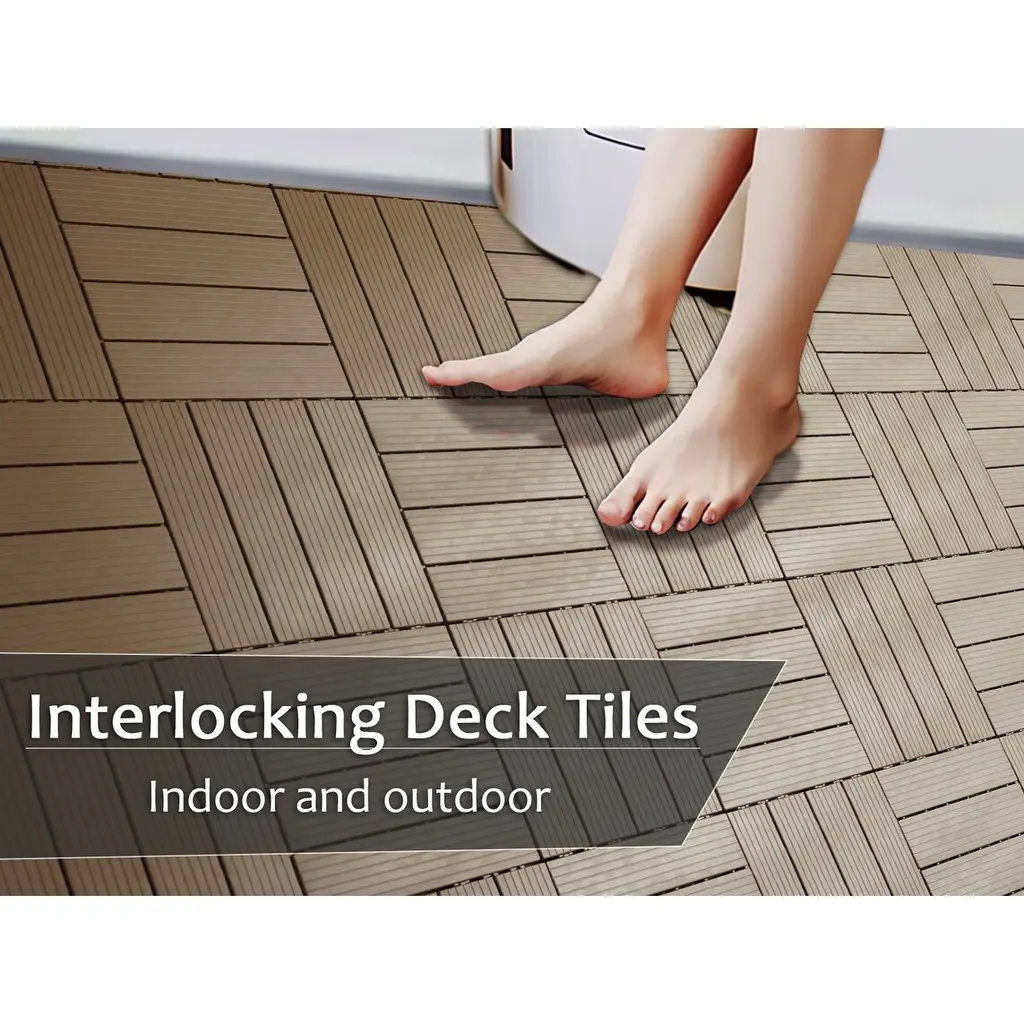 Plastic Composite Deck Tiles Set Of 35pcs, Easy Diy Interlocking, Durable, Waterproof, Indoor/outdoor Flooring, 12x12in - Light Coffee