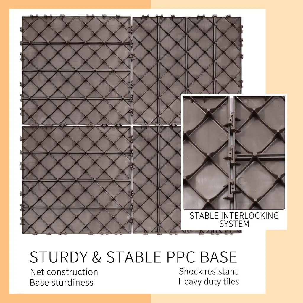 Plastic Interlocking Deck Tiles, 11.8"x11.8"(pack Of 44 ), Patio Flooring Outdoor Waterproof All Weather Use - Light Coffee