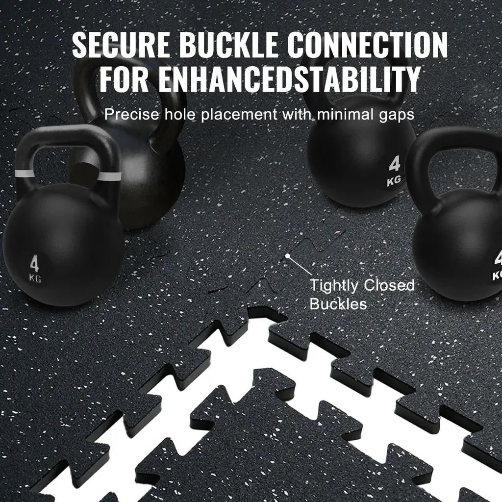 Upgraded Material: The mat is made of 2-in-1 material, 0.56 inch rubber top with EVA foam ensures excellent slip resistance. This gym flooring for home gym design effectively absorbs shock and rebounds while providing enough grip for safe workouts. 24 / 48 / 100 Square Feet Coverage: For 24 sq.ft option: The gym mats include 6 tiles and 12 borders, covering 24 sq ft. For 48 sq.ft option: The gym mats include 12 tiles and 24 borders, covering 48 sq ft. For 100 sq ft option: The gym mats include 25 tiles and 50 borders, covering 100 sq ft. The workout mats can reduce the noise effectively, allowing you to work out upstairs without disturbing those below, making your fitness routine neighbor-friendly. Wear and Scratch Resistant: The surface is made of high-tensile rubber material, making it durable against wear and scratches. These rubber floor mats resist marks from foot traffic and are not easily damaged. Interlocking Design: Our interlocking foam exercise mats provides quick and convenient assembly for your home fitness program. Easy Care: Enjoy easy maintenance with our cleanable gym floor mat; simply wipe or rinse the surface for quick and effortless cleaning, ensuring your rubber flooring tiles stay fresh and ready for your next workout. Package Content 1 x Instruction Manual
