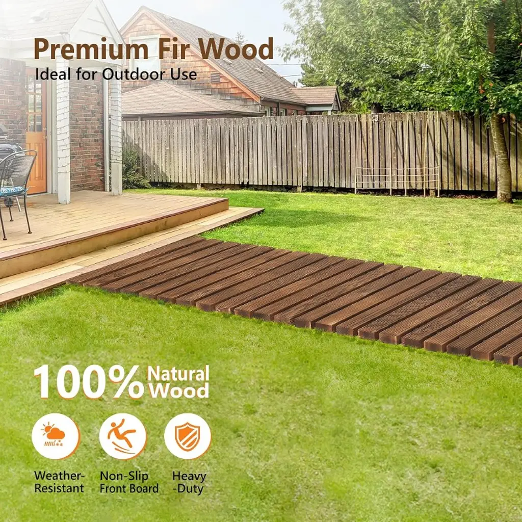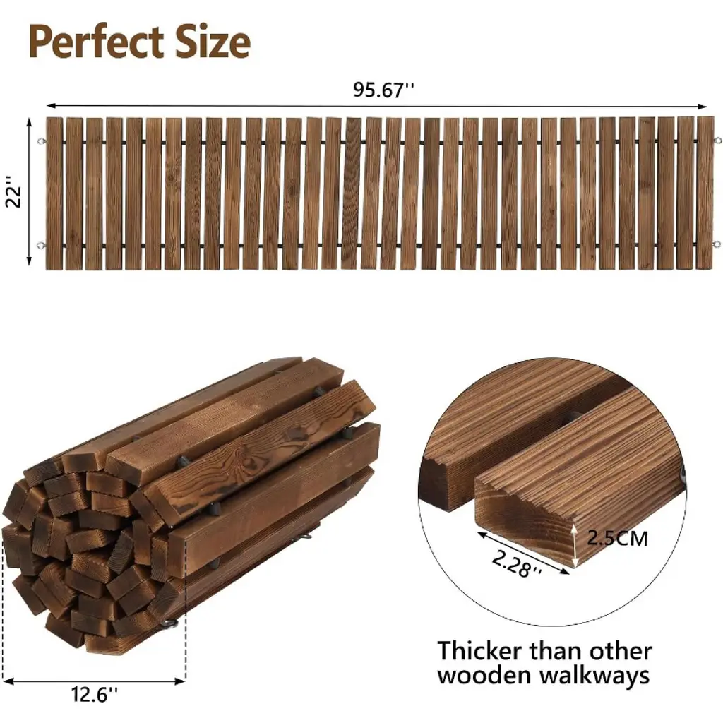 Vingli 22in X 8Ft Wooden Garden Pathway For Outdoors, Roll Out Pathway Flooring, Anti-slip Patio Walkway With Wire&stake