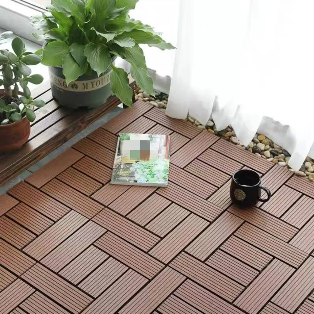 Easy to Install: These deck flooring tiles have an interlocking design base for easy do-it-yourself installation and no tools required for installation.No messy glue, no nails, perfect match and precision spacing between every tile.Unique Design:Our wooden tiles has a simple, beautiful design that can be used indoors and outdoors,6 slats per tile,there is a small gap between each slats for better drainage.Indoor & Outdoor Use: The interlocking deck tiles has PP platform base allows for adequate drainage and moisture, Great for decks, patios, balconies, around pools, saunas, showers, sun rooms, mud rooms, bedrooms, and more.High Quality:Our wood flooring tiles are made of wood-plastic composites. Wood-plastic composite material makes superior water resistance compared to natural wood, resistant to swelling or decay, slip resistant. Super durability and fade resistance.It is eco-friendly product for your home to create a beautiful space both inside and outside.